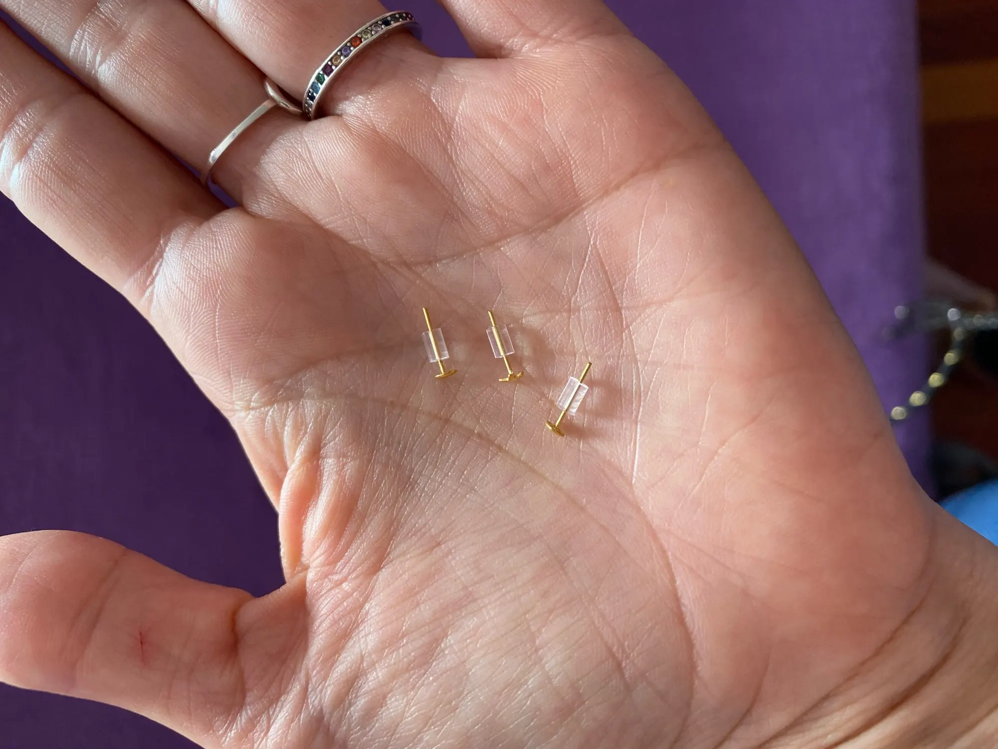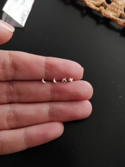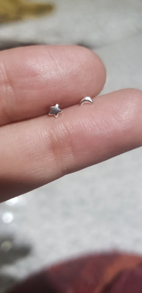 Они очень маленькие, идеально подходят для пирсинга или младенцев. Я буду использовать их в верхней части уха. Очень простой и красивый. Они прибыли через месяц.