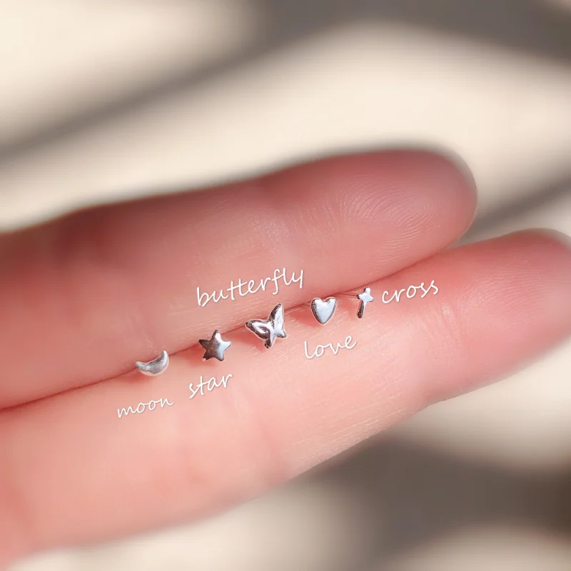 Женские маленькие серьги-гвоздики, серьги из стерлингового серебра 925 пробы, звезда, луна, любовь, Бабочка, цветок, золотые ювелирные украшения, 2020