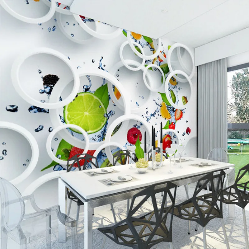 Пользовательские настенные стикеры 3D фруктовые круги ресторан кухня гостиная фон, Настенная фотография обои самоклеющиеся водонепроницаемые