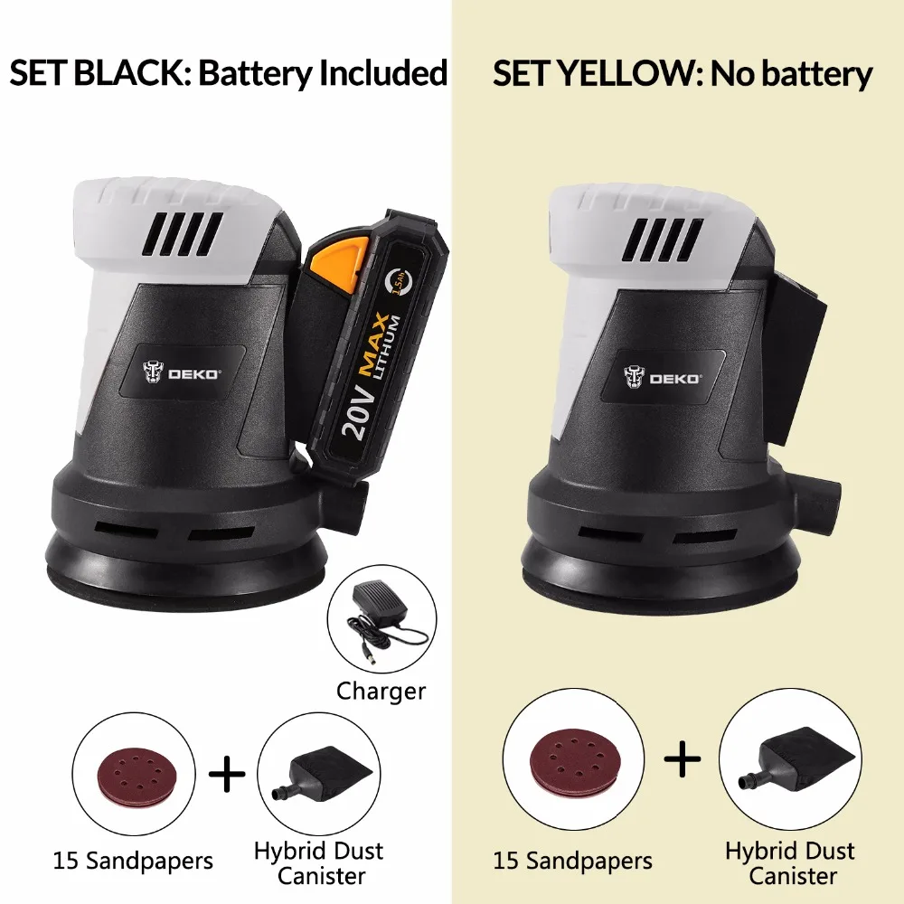 Электрический шлифовальный станок DEKO DKSD20Q2, 20 в, с гибридной канистрой для пыли и 15 листами наждачной бумаги