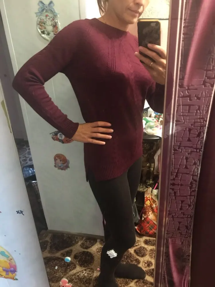Очень прекрасный свитер. Мягкий тёплый. Очень аккуратненький. Но лучше брать на размер больше. А так чудо свитеров. Не толстый и не тонкий. Цвет прекрасный. Спасибо большое продавцу.