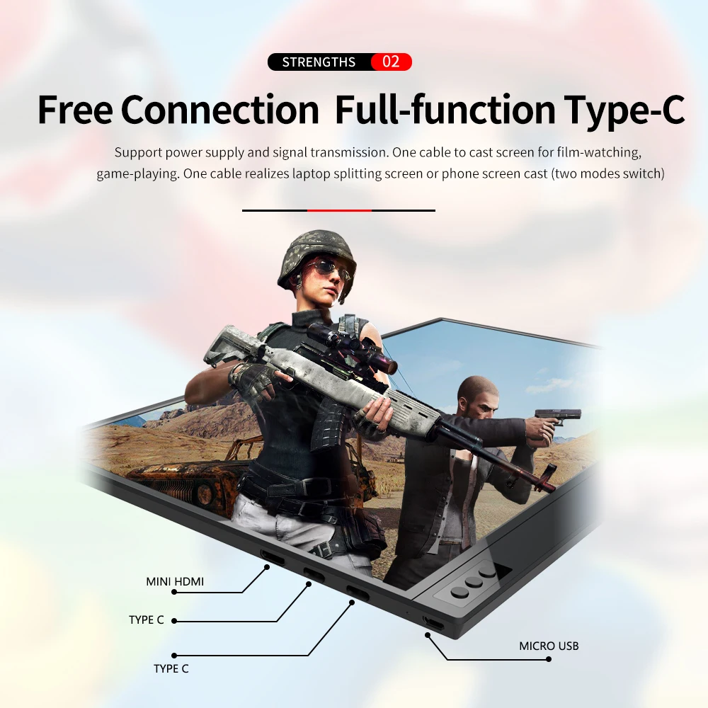 Наслаждайтесь более удобной жизнью. Этот портативный монитор гладкий и удобный для переноски. Высокое разрешение 1920*1080 дает отличный обзор. Будучи портативным, вы можете взять его с собой в путешествие или командировку. Играть в игры и смотреть фильм на кровати.