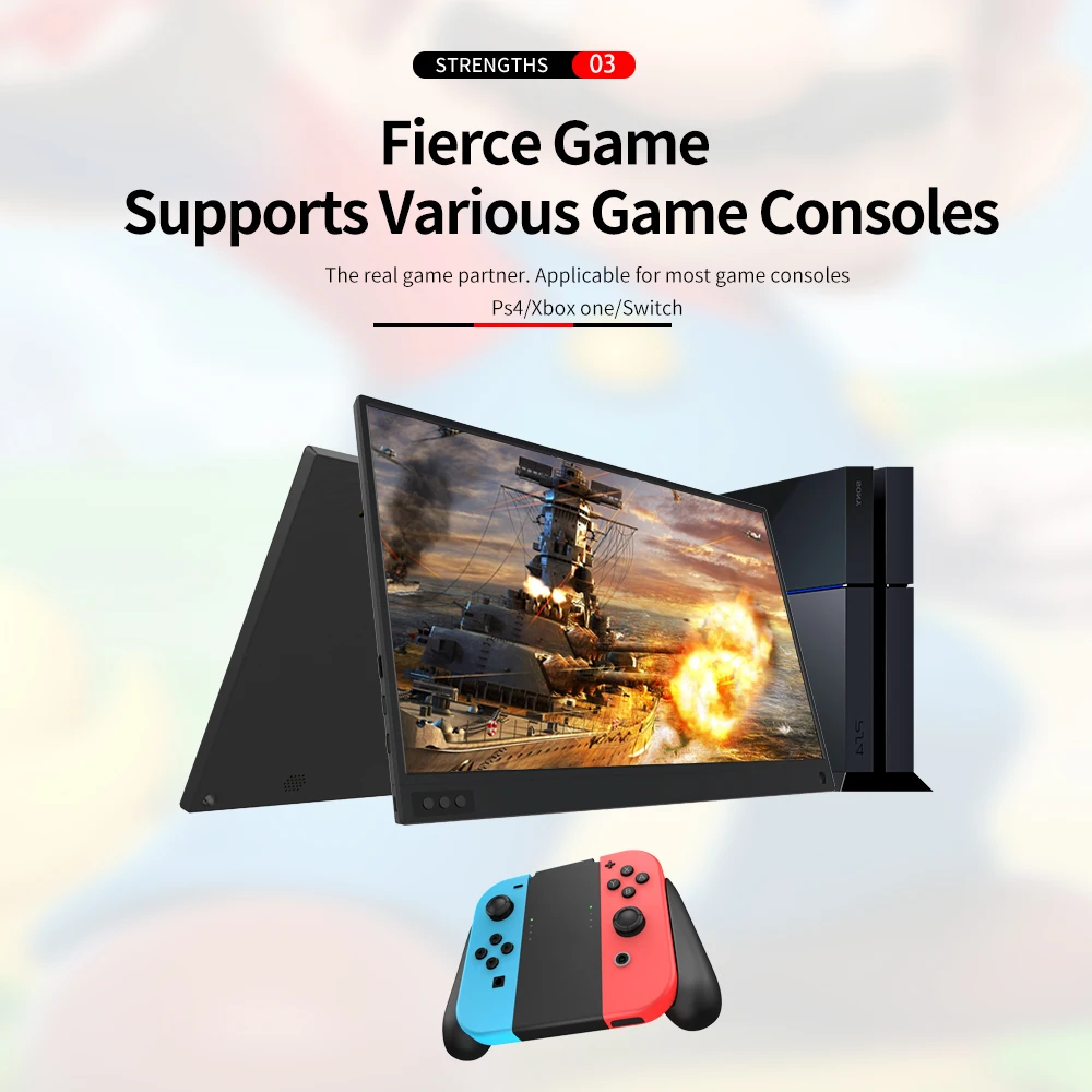 T-bao портативный Экран расширения игрового монитора 1920x1080 HD IPS 15,6 дюймовый дисплей СВЕТОДИОДНЫЙ монитор с кожаным чехлом для Nintendo Switch PS4 Pro / Xbox One X / PC ноутбука (черный)