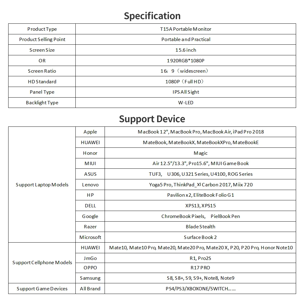 Он может соответствовать системе windows 10 и иметь выходное устройство HD в качестве двойного дисплея; Высокое разрешение 1080P и экран IPS с цветовой гаммой 72%. Пусть каждая деталь будет четкой.