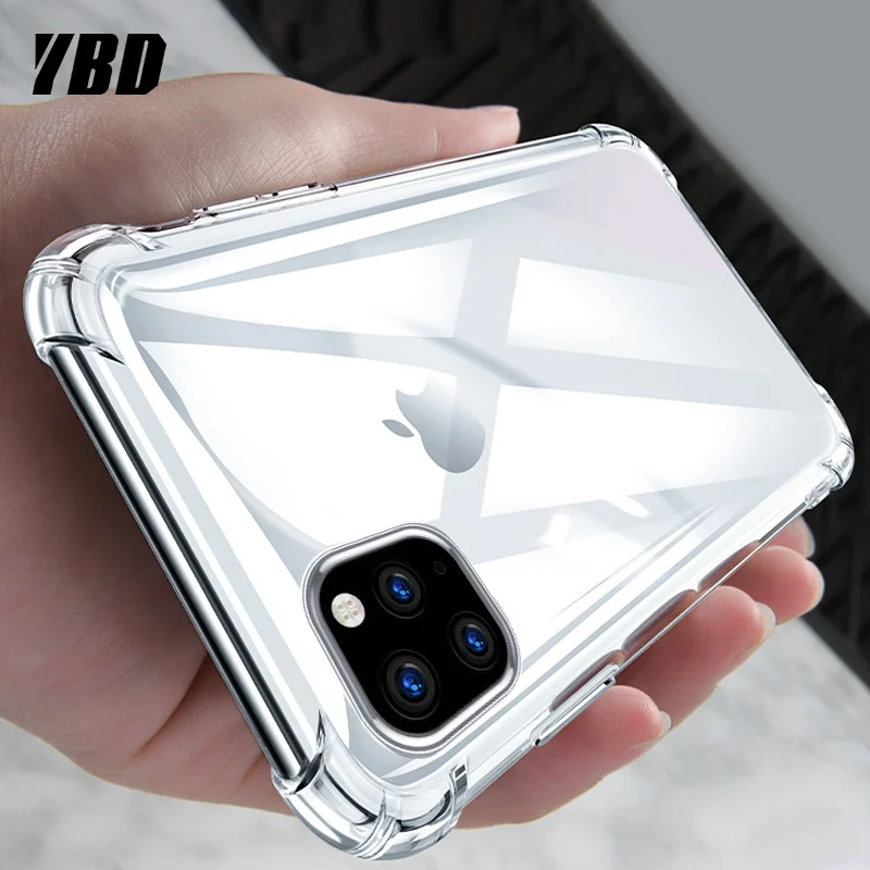 Противоударный бампер YBD, прозрачный силиконовый чехол для телефона iPhone 11 X XS XR XS Max, прозрачный защитный чехол-накладка для 8 7 6 6S Plus