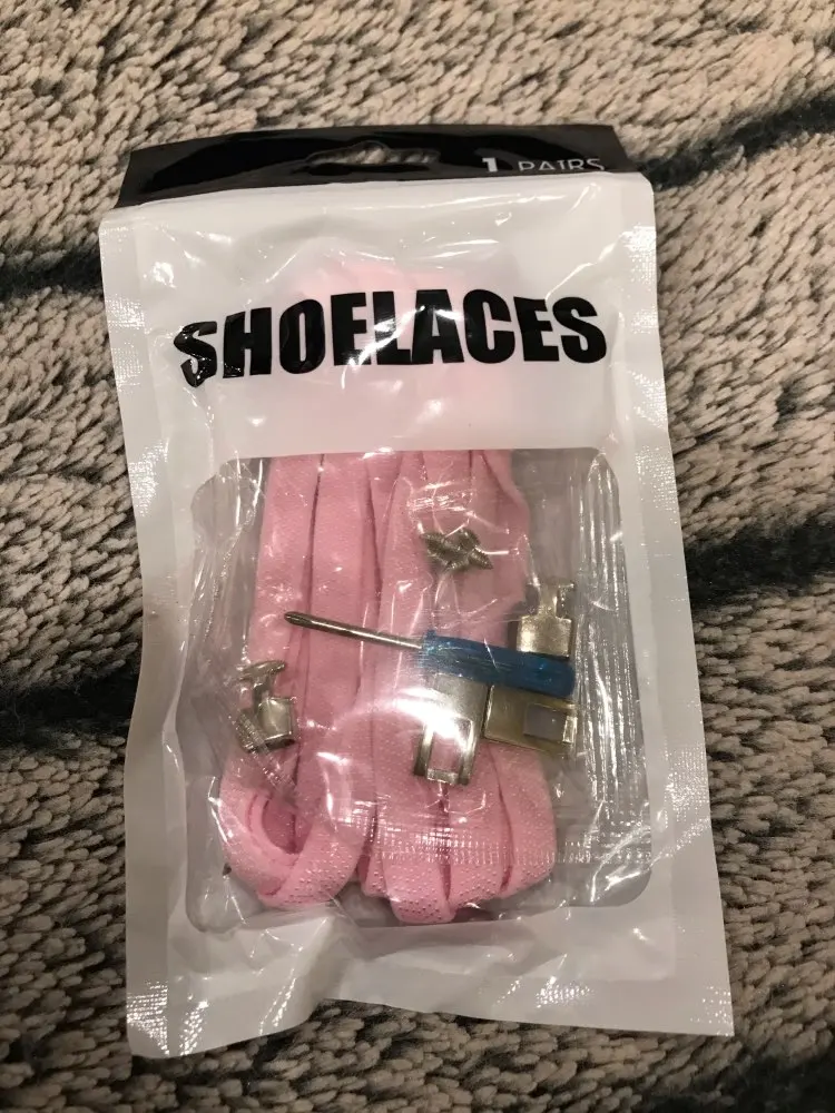 Шнурки хорошего качества, в комплекте два шнурка, одного хватило на пару обуви. Маленькая отвёрточка в помощь. Спасибо продавцу! Рекомендую!