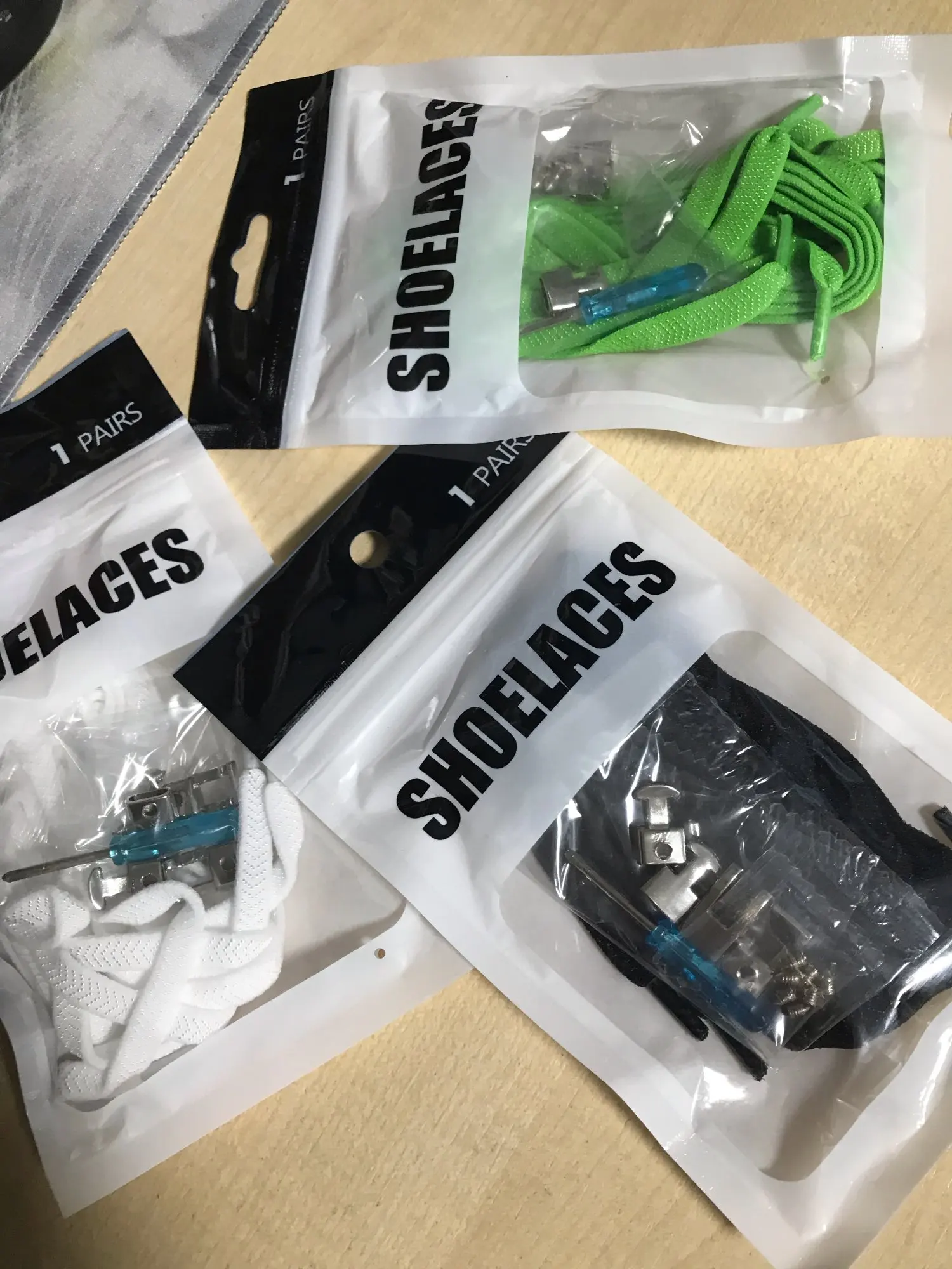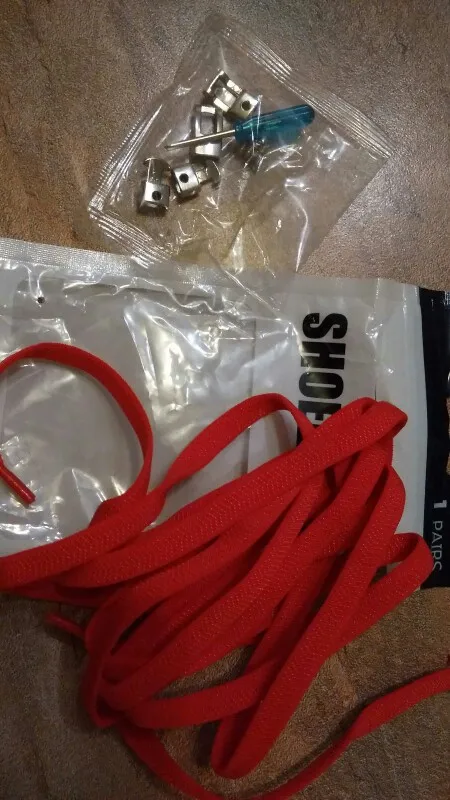 Шнурки хорошие, тянутся. В каждом наборе застёжки, 8 шурупов и отвёртка. Тем не менее у самих шнурков концы заделаны пластик как у обычных - думаю, так их тоже можно использовать. Впрочем, я ещё не распаковывал их, так что по носке прокомментировать не могу.