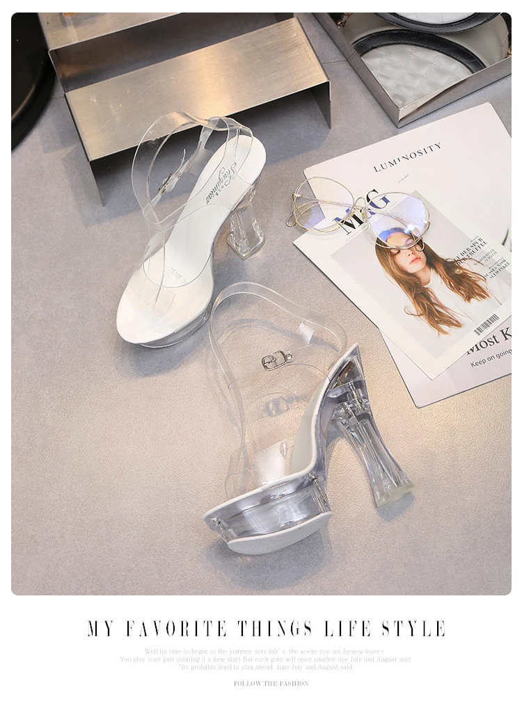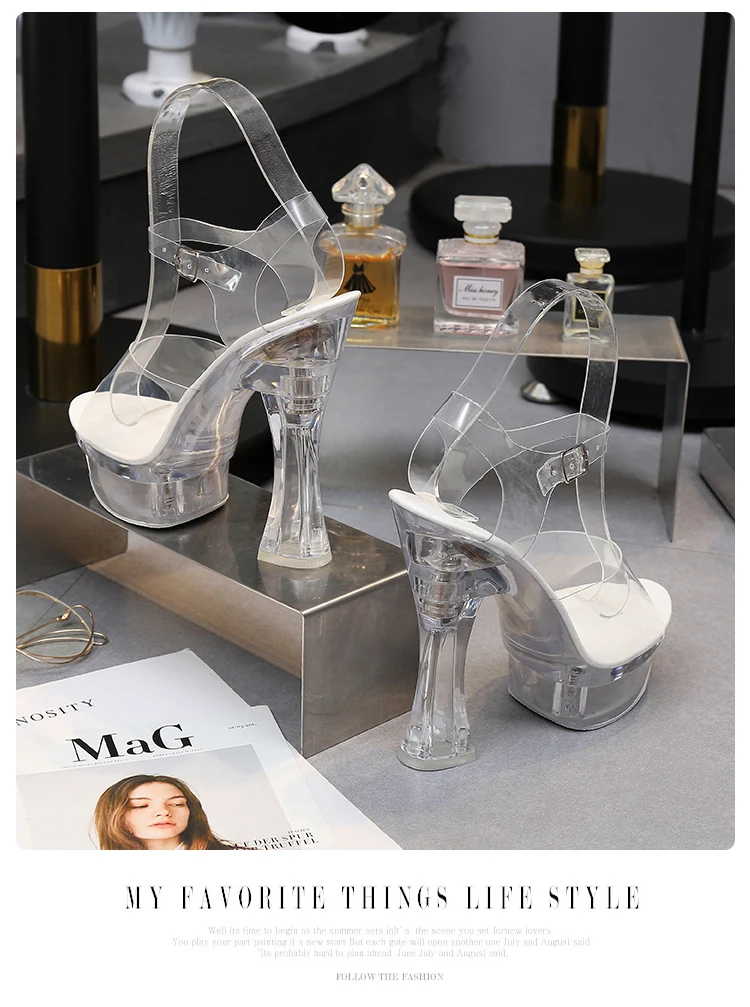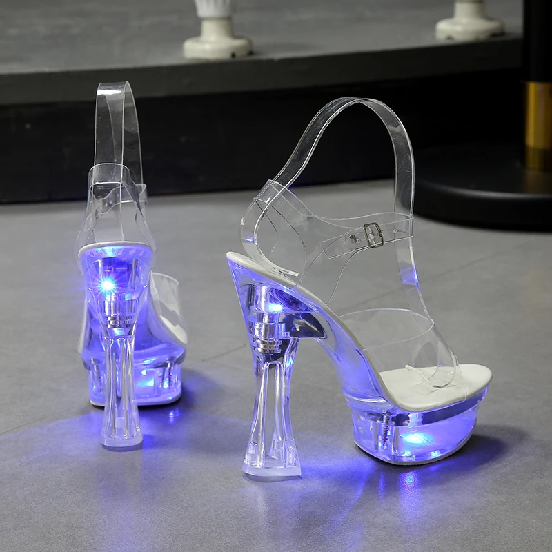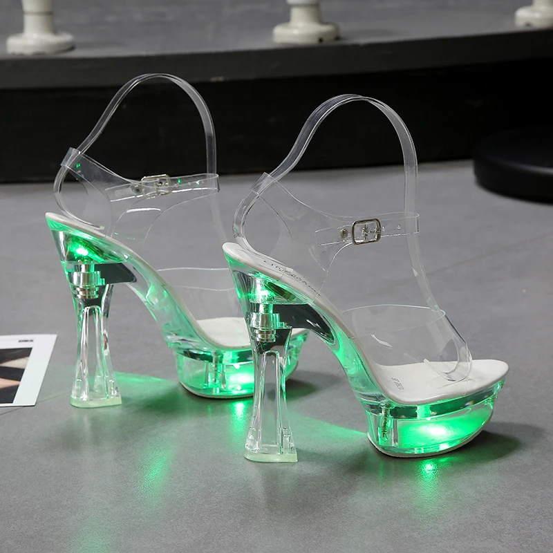 Сандалии женские на высоком каблуке 15 см, блестящие босоножки на платформе, прозрачная обувь с подсветкой, 6 цветов