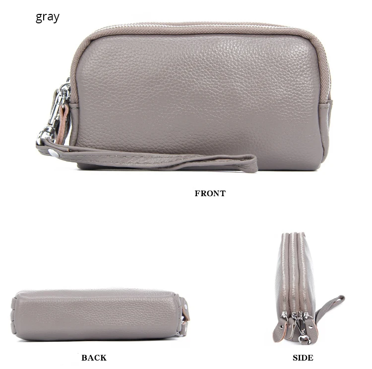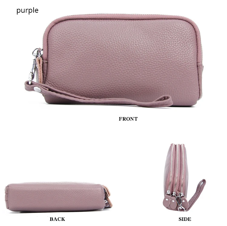 Дамские кошельки из натуральной кожи, бумажники для телефона с 3 молниями, клатч, карточки-ключи кошелек для мелочи, тонкий бумажник из воловьей кожи для женщин