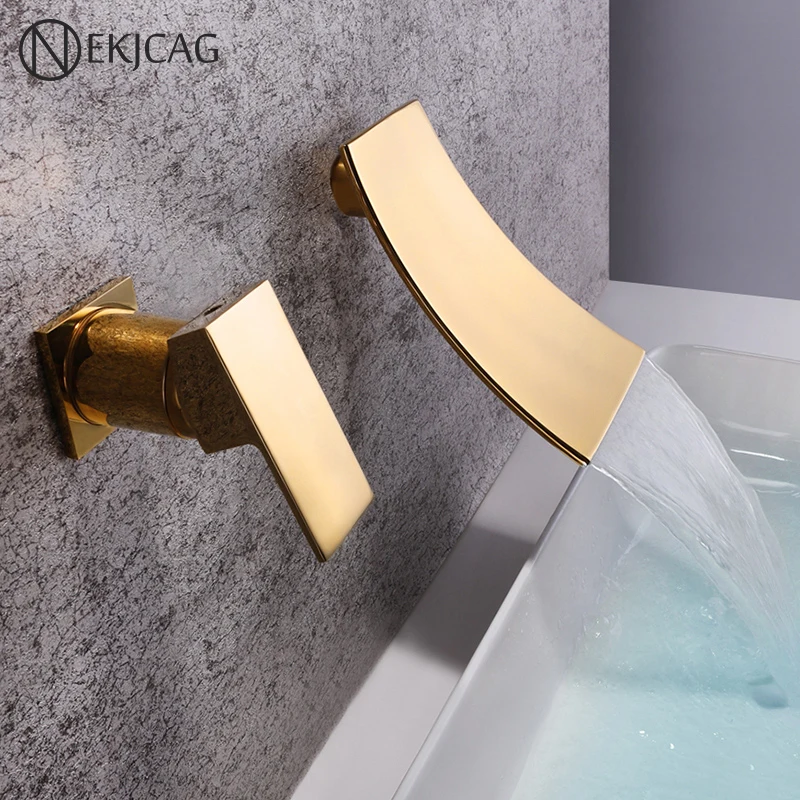 Скрытый смеситель для раковины, золотистый, черный, латунный, для горячей и холодной воды под кран для стойки, раковины, водопад в стиле ретро