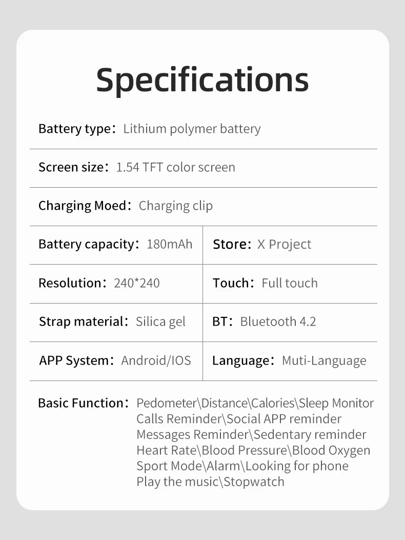 Добро пожаловать в наш магазин: 1. О логистике: мы выбираем быструю логистику в каждой стране, и логистика защищена, чтобы убедиться, что вы получили посылка. 2. О доставке: мы доставляем товары очень быстро, обычно в течение 24 часов как можно скорее. 3. Мы гарантируем, что каждое устройство проходит тщательную проверку перед отправкой, поэтому все продукты могут гарантировать 100% Высокое качество перед отправкой. Большое спасибо! 4. Мы не ставим никаких счетов-фактур, qr-кодов, рекламных акций в отгрузке, поэтому не волнуйтесь, просто купите его, мы сделаем все для вас хорошо. 5. О послепродажном обслуживании: один год после продажи бесплатная гарантия, давая вам защиту после продажи. 6. У нас есть быстрый способ доставки в Великобританию, Германию и Францию, Бразилию, Россию, Испанию, Украину и т. д., мы приветствуем перепродажу нашего продукта. 7. Пожалуйста, свяжитесь со мной, если вы хотите реальные фотографии. 8. Данные измерений часов только для справки, пожалуйста, не используйте их в качестве медицинского устройства. Пожалуйста, будьте уверены, чтобы купить, и надеюсь, что мы и покупатели станем друзьями и долгосрочным сотрудничеством, мы честная фабрика, большое спасибо за вашу поддержку. Спортивные Смарт-часы X8 с Bluetooth и пульсометром, полноразмерный сенсорный экран, умные часы для IOS Android Phone