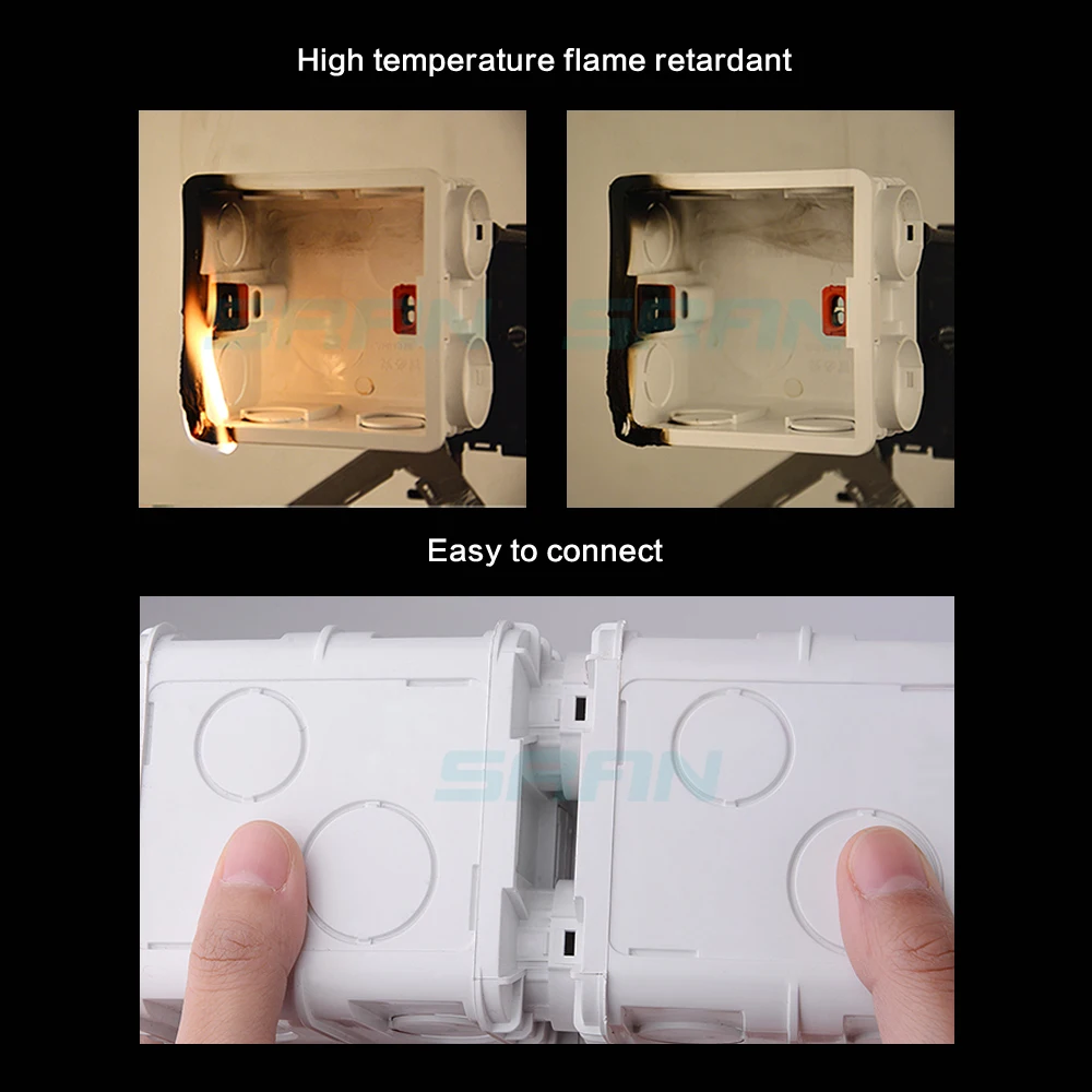 Регулируемая Монтажная коробка SRAN, внутренняя кассета 86 мм * 83 мм * 50 мм для переключателей и розеток типа 86, белаякрасная задняя коробка для проводки