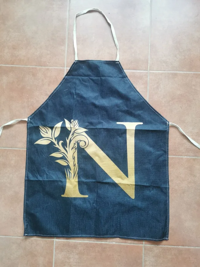Кухонный Фартук с узором с золотыми буквами алфавита 53*65 см для женщин без рукавов из хлопка и льна фартуки для приготовления еды домашняя уборка инструменты WQ0051