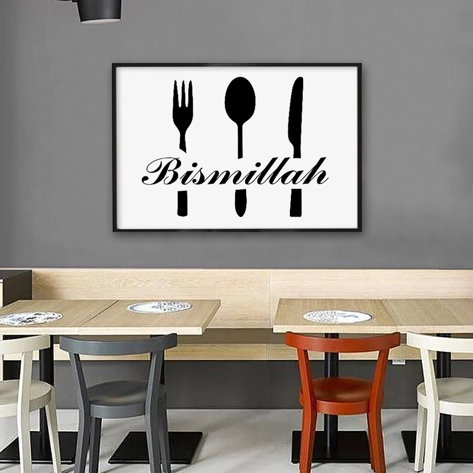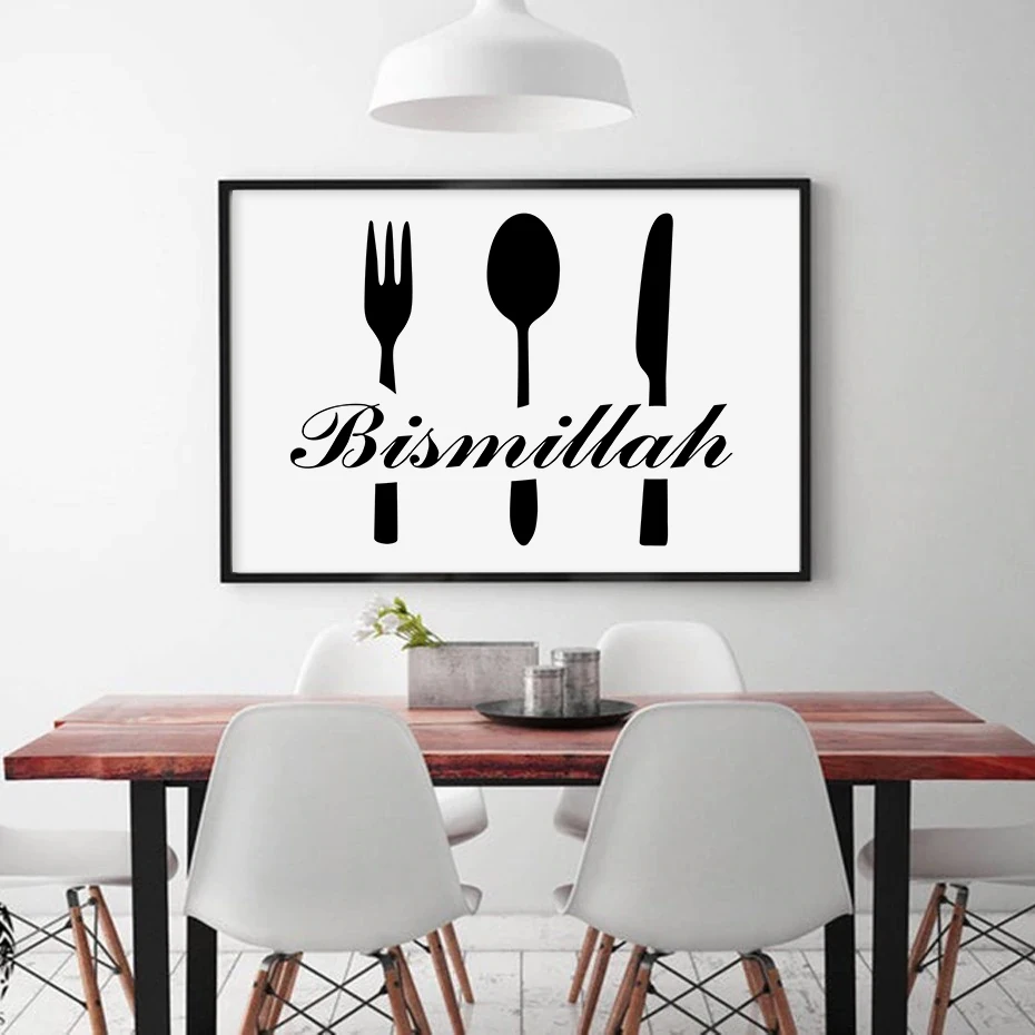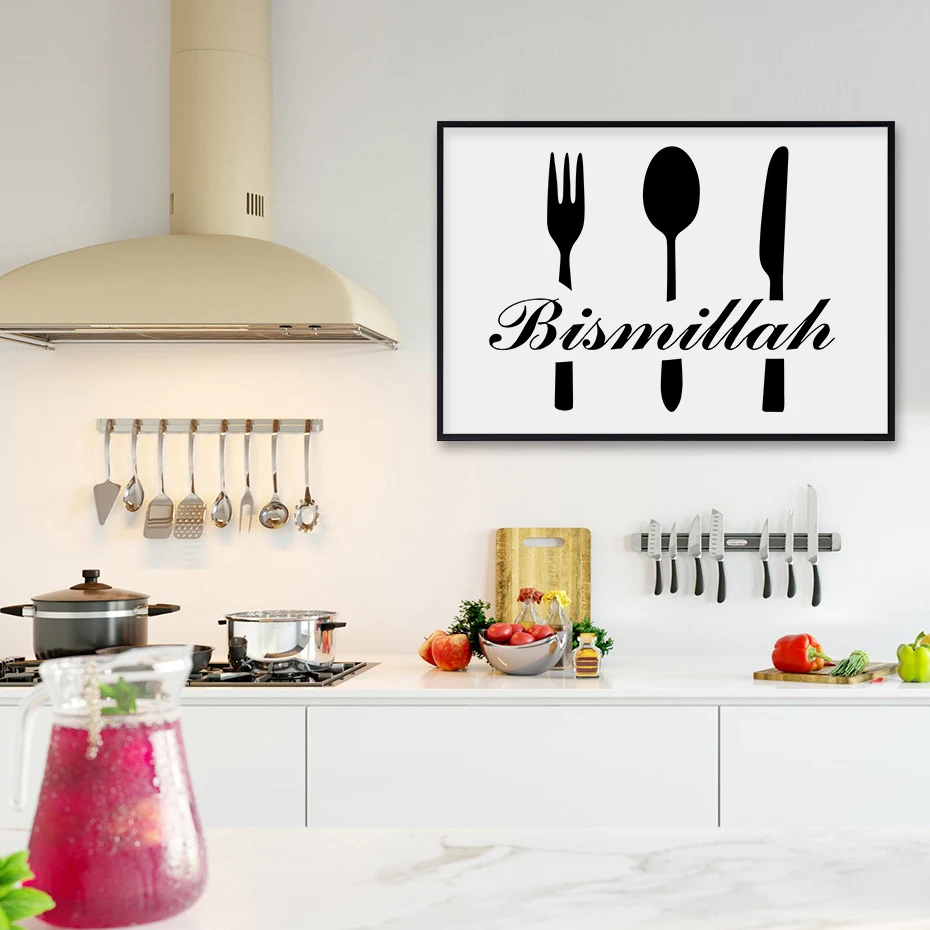 Bismillah черно-белые буквы, Islam ic холст, картина, подарок, ислам, настенное искусство, печать и постеры, ресторан, кухня, домашний декор