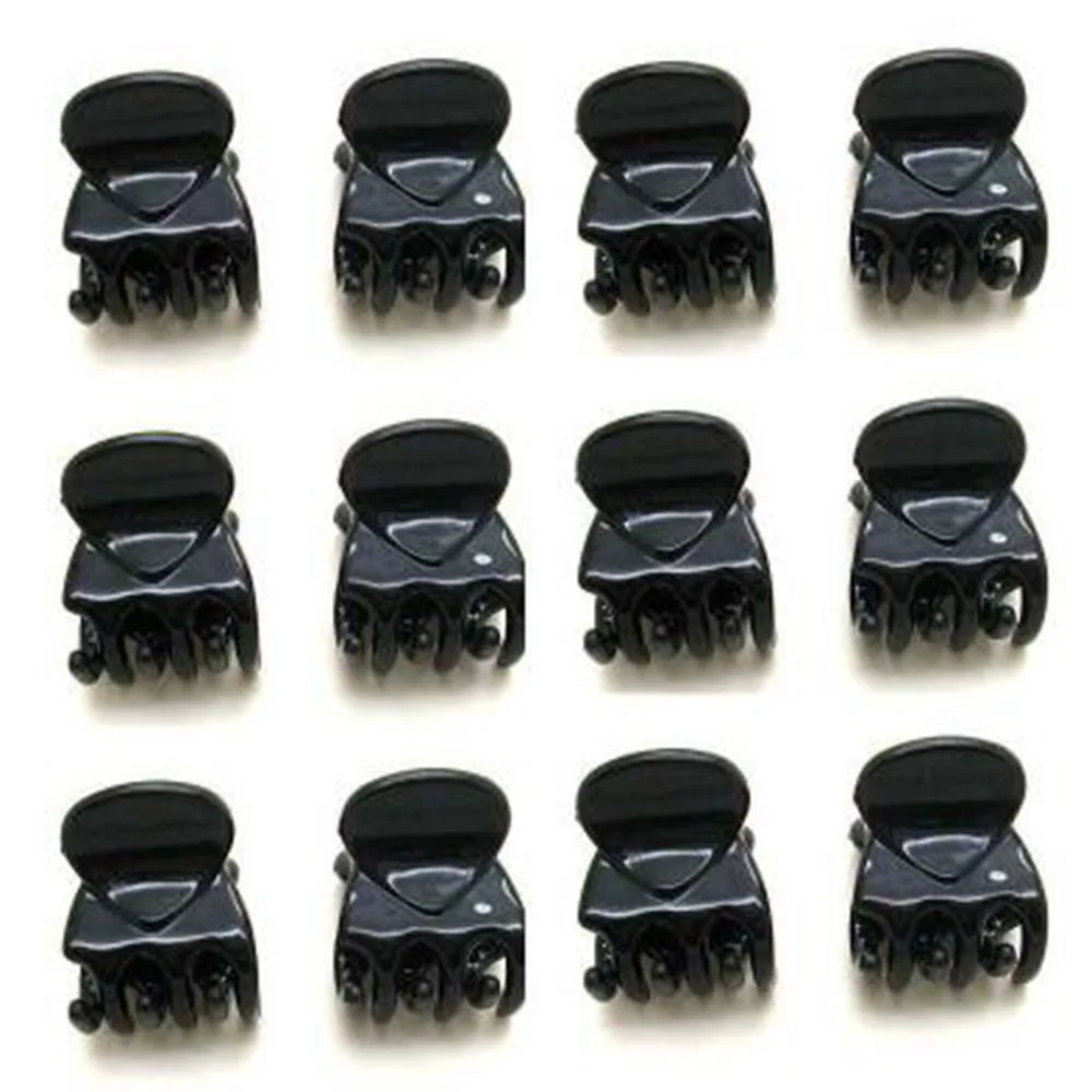 Мини-заколка для волос, черная, пластиковая, с 6 зажимами, 12 шт.