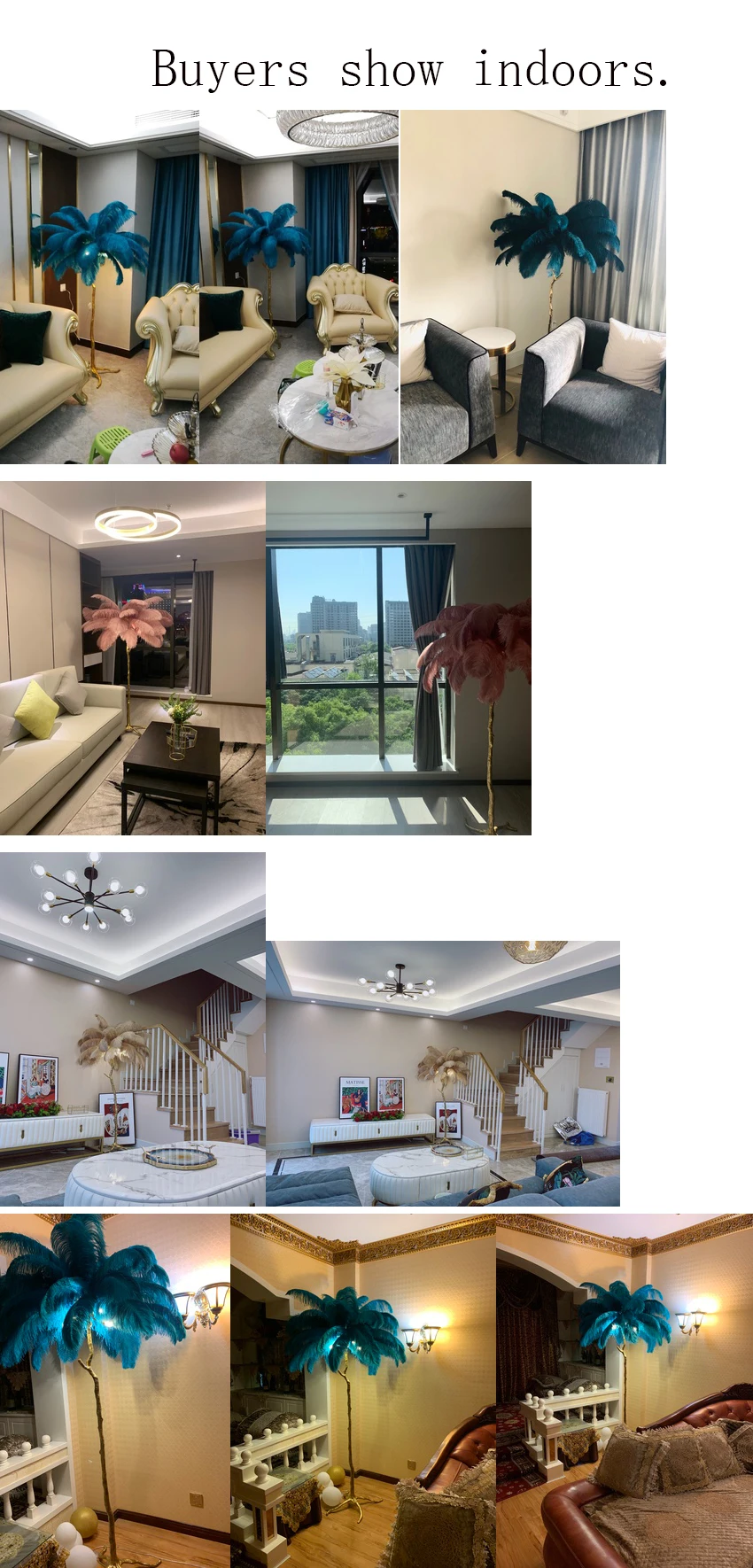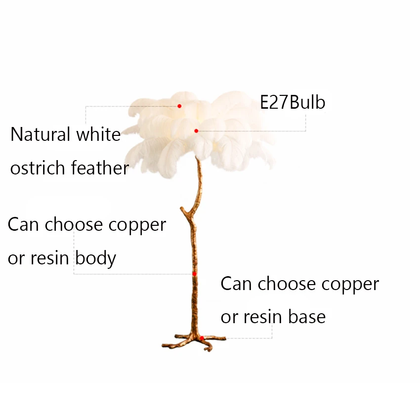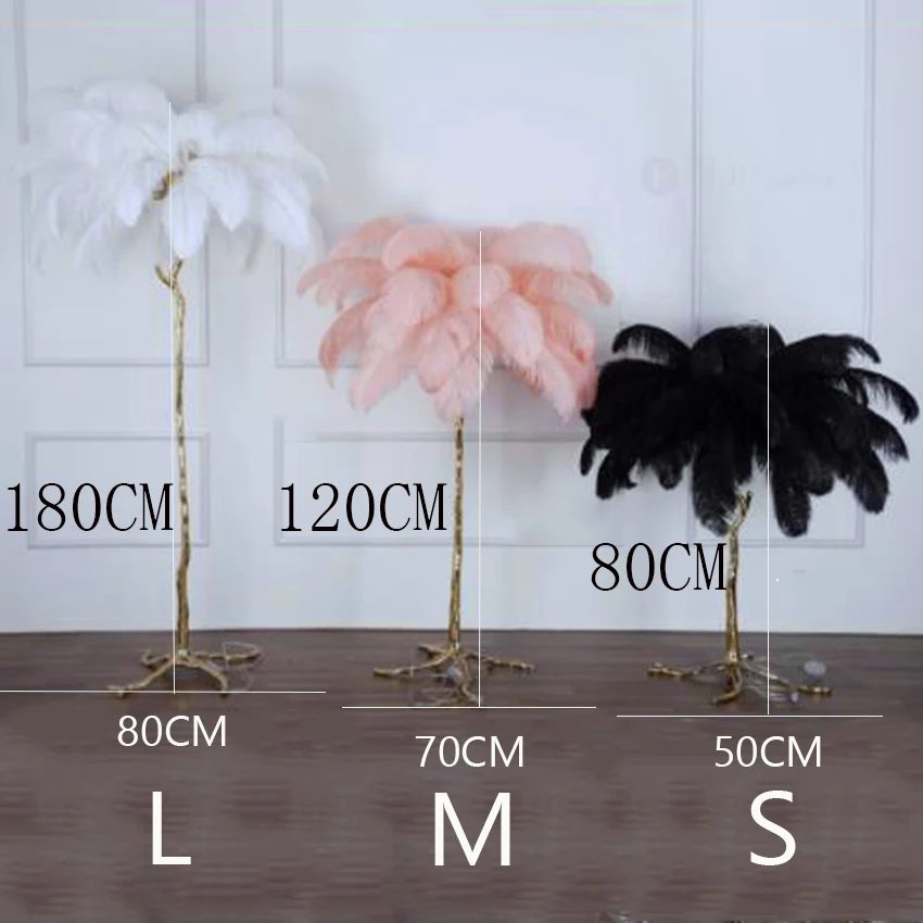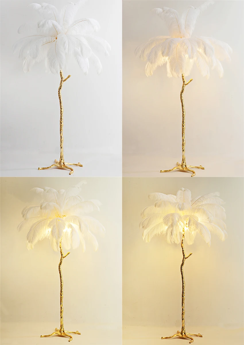 Напольный светильник в скандинавском стиле, из страусиных перьев