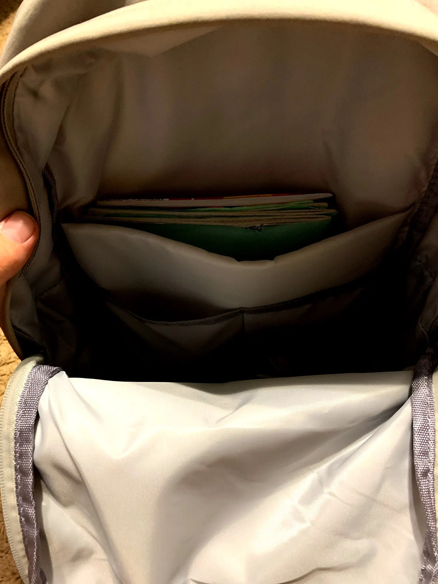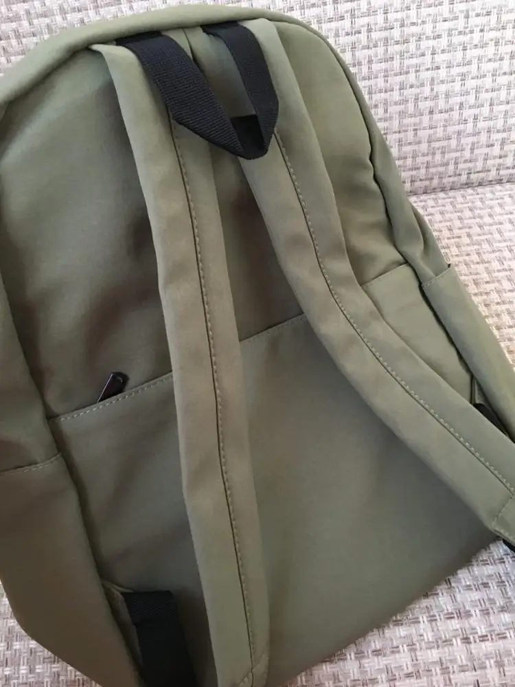 Хороший рюкзак. Оптимальный размер. С подкладкой. Внутри отдел для ноутбука, на нем нашиты 3 плоских кармашка (для ручек и таких предметов). Со стороны спины тоже карман на молнии (для документов хорошо, не вытащат). Продавец положил саше с приятным мужским ароматом, поэтому никаких неприятных запахов не было. Швы аккуратные, нитки не торчат. Жалею, что сомневалась и не купила раньше.