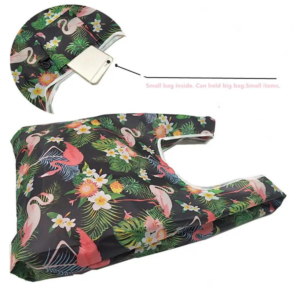 Складная сумка для покупок с модным принтом фламинго, экологически чистая многоразовая сумка для покупок, многоразовый мультяшный цветочный кошелек, большая сумка-тоут