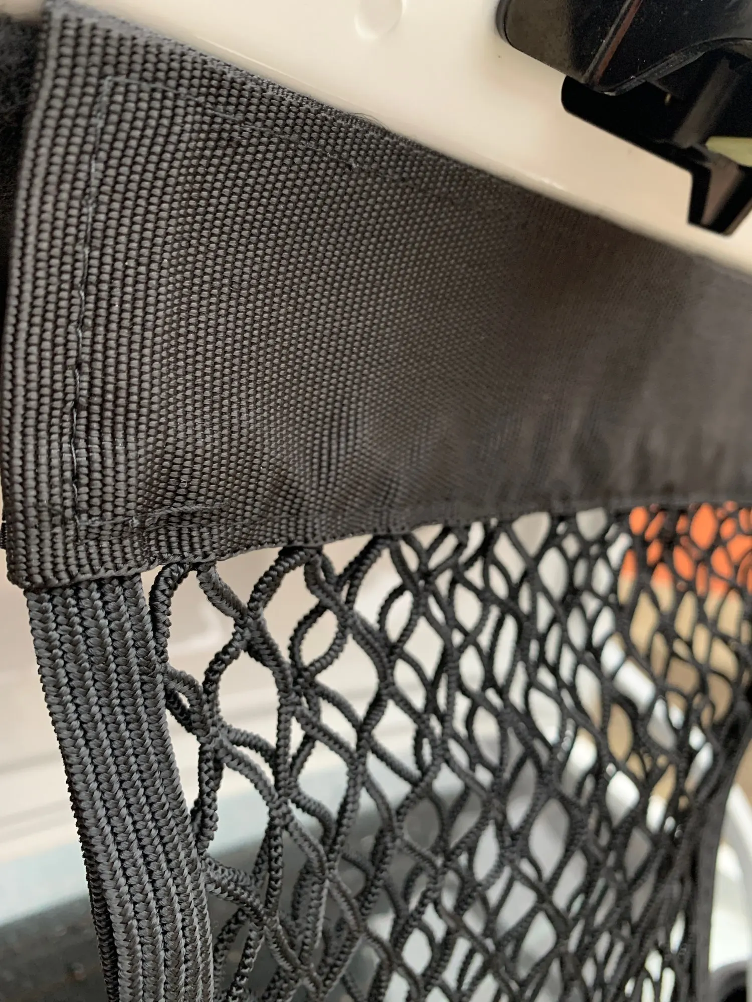 Сетка хорошая, описанию соответствует. Достаточно плотная, ОП2 с аптечкой не болтаются. Пробовал велкро на ковре в ногах - вообще не цяплялось, а вот на спинке задней сидушки зацепилось очень хорошо. В целом доволен, своих денег стоит.