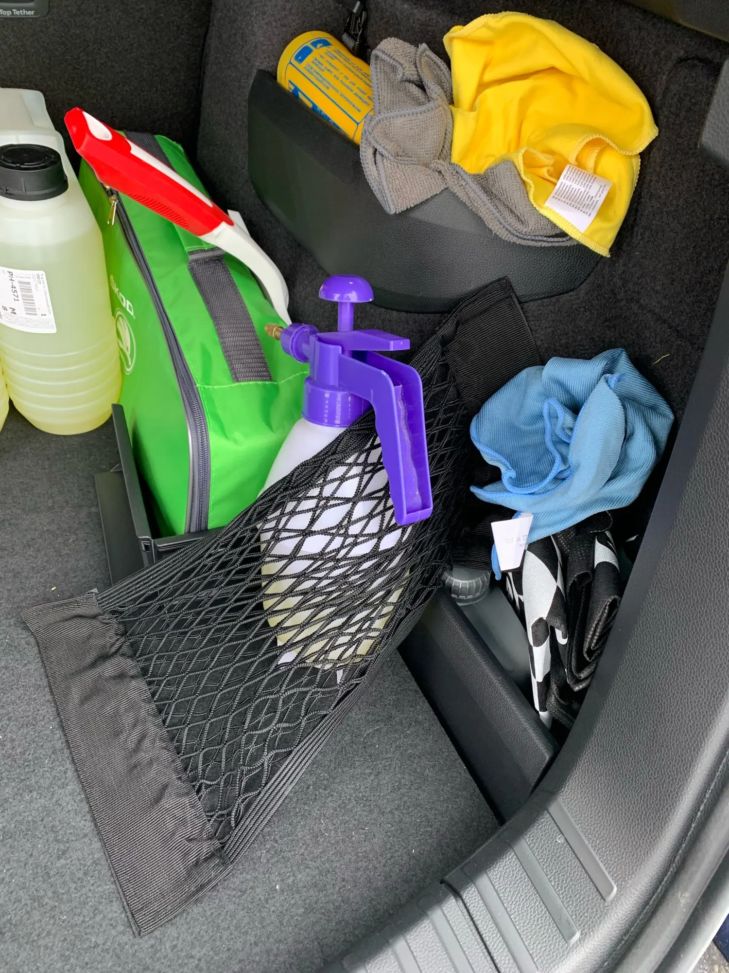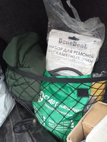 Компактный карман для мелочей в багажнике. Очень небольшая сетка, держится надежно. Качество вполне, не считая некоторых неровностей))