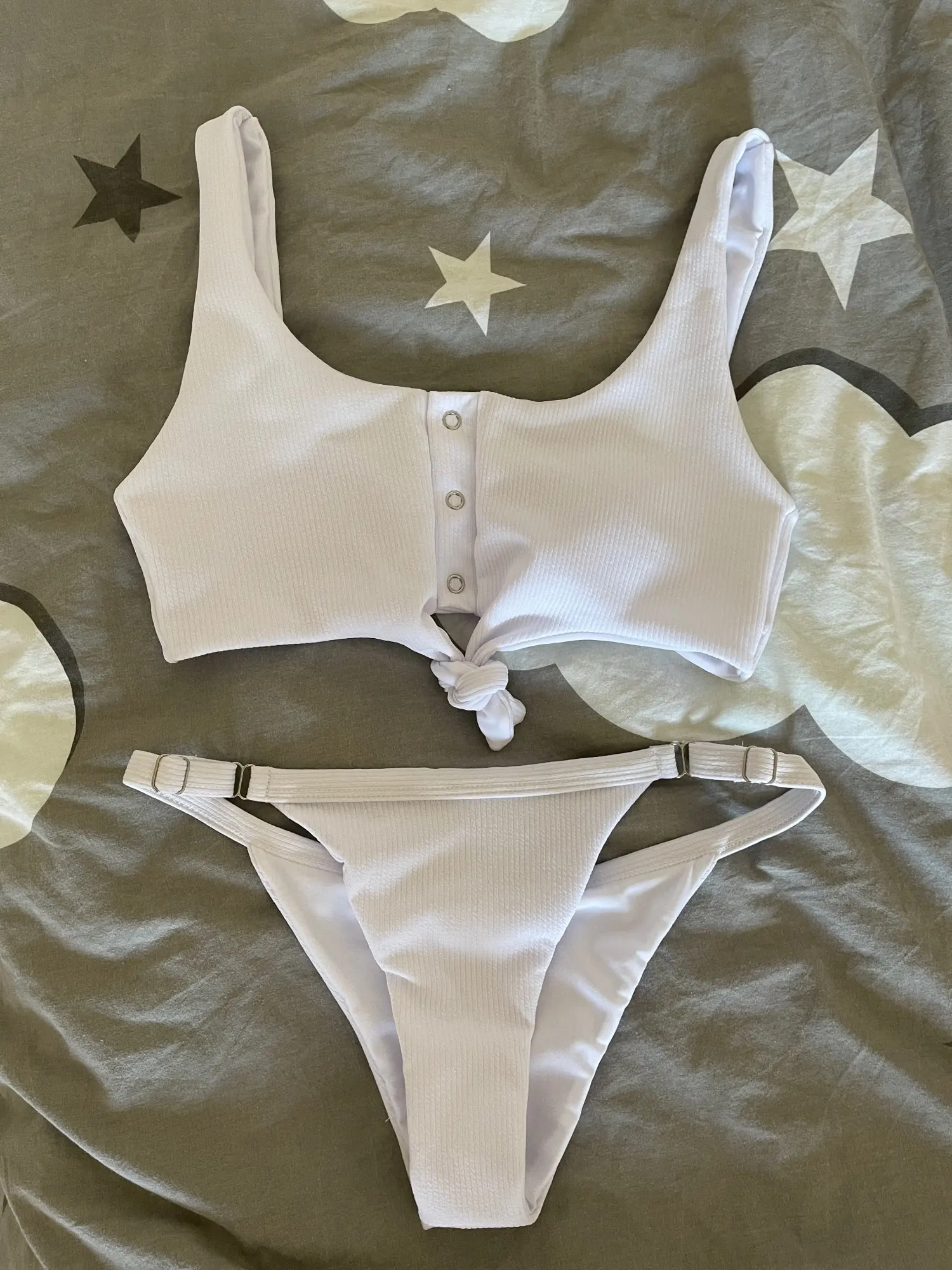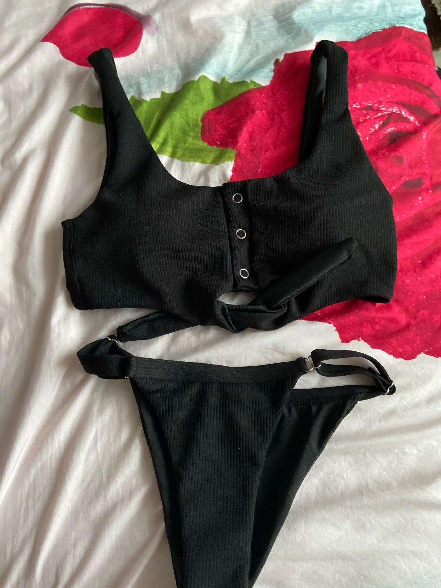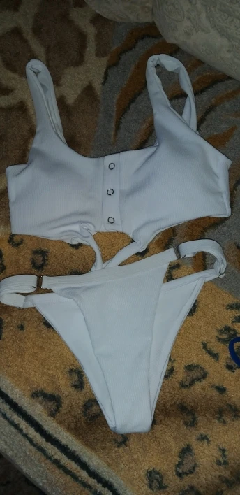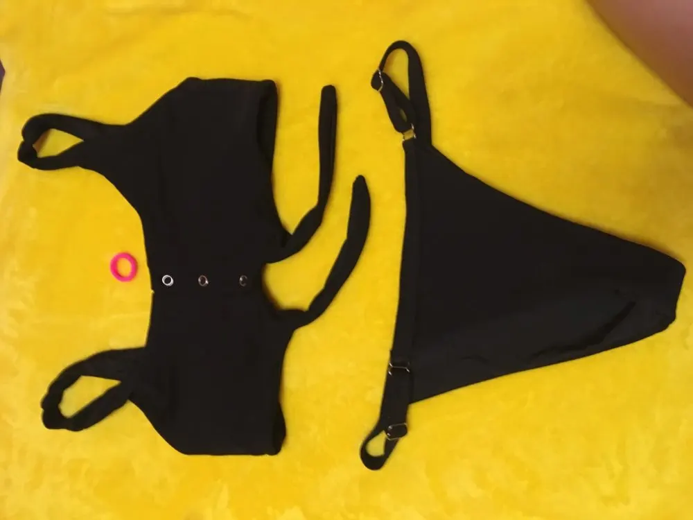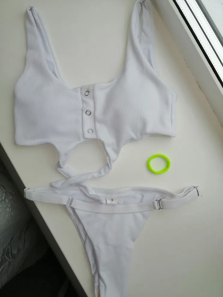 прикольный купальник, но очень закрытый верх, трусики регулируются. в подарок положили синюю резинка для волос, спасибо)