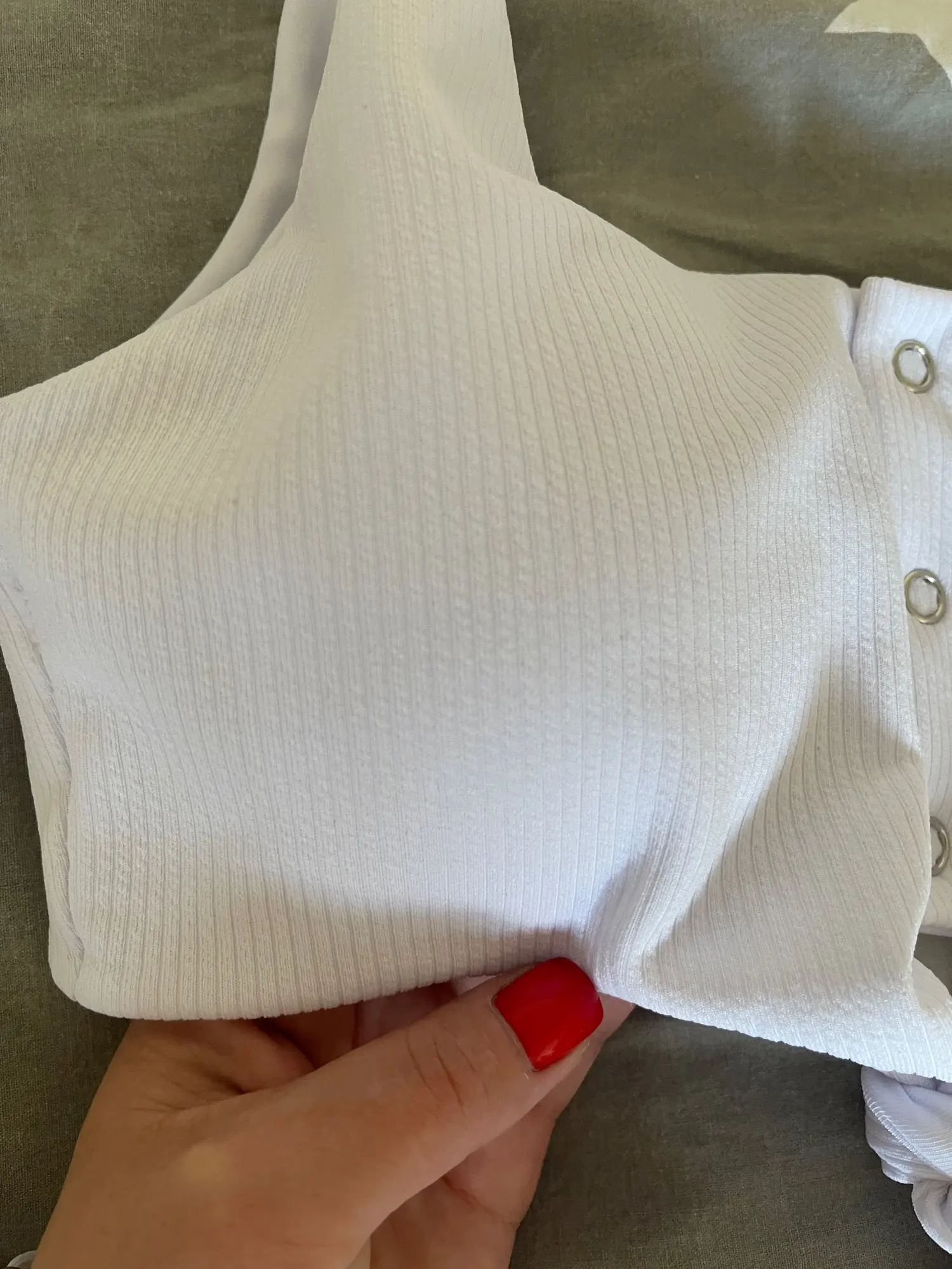 Хорошая приятная ткань и качество пошива. Размер L подходит на 44-46.... если размер ваш больше, брать L не надо. Чашечки не вынимаются, зашиты внутри, ремешок на трусиках можно регулировать, но на размер 48 все равно не пойдет, можно отрегулировать в меньшую сторону.