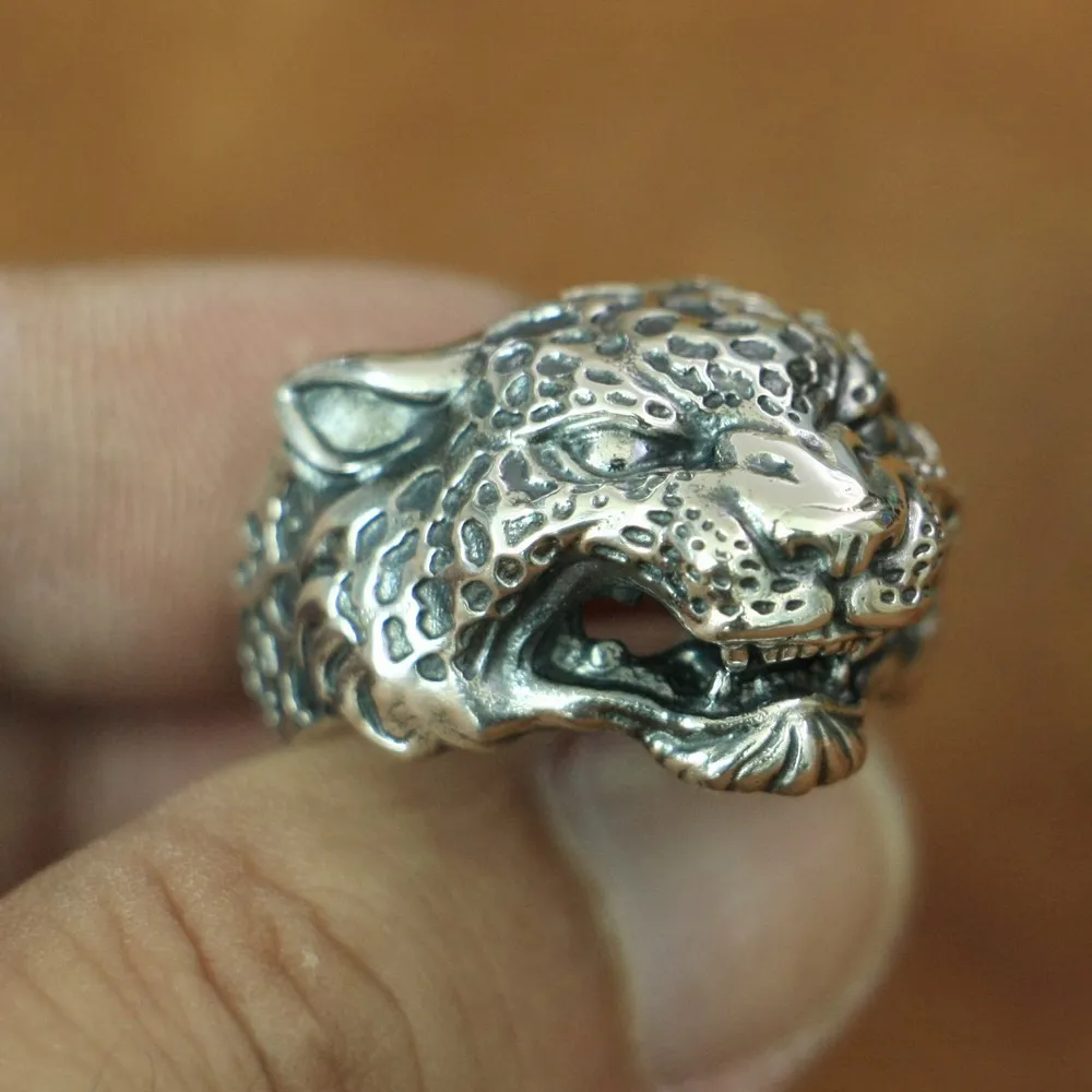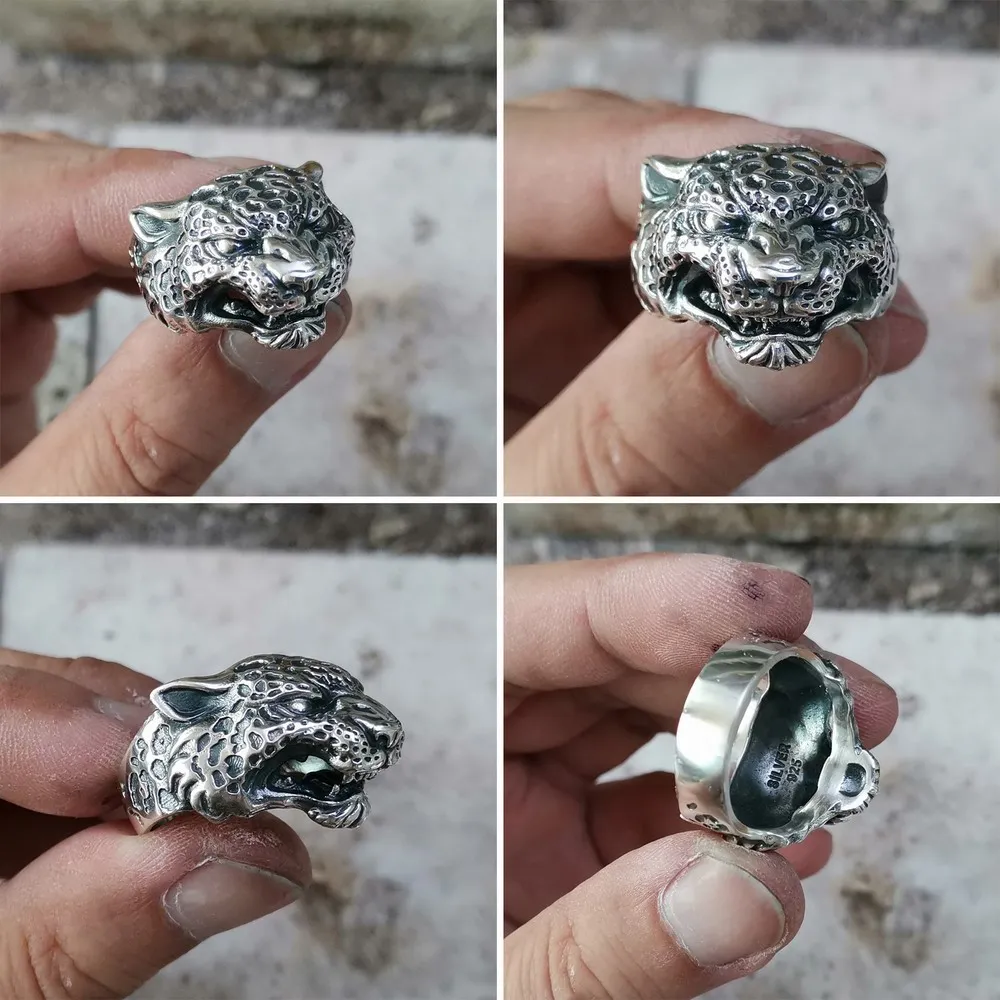 Кольцо мужское байкерское из серебра 925 пробы, с леопардовым принтом, TA151, размер США 7 15