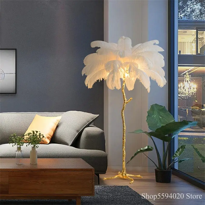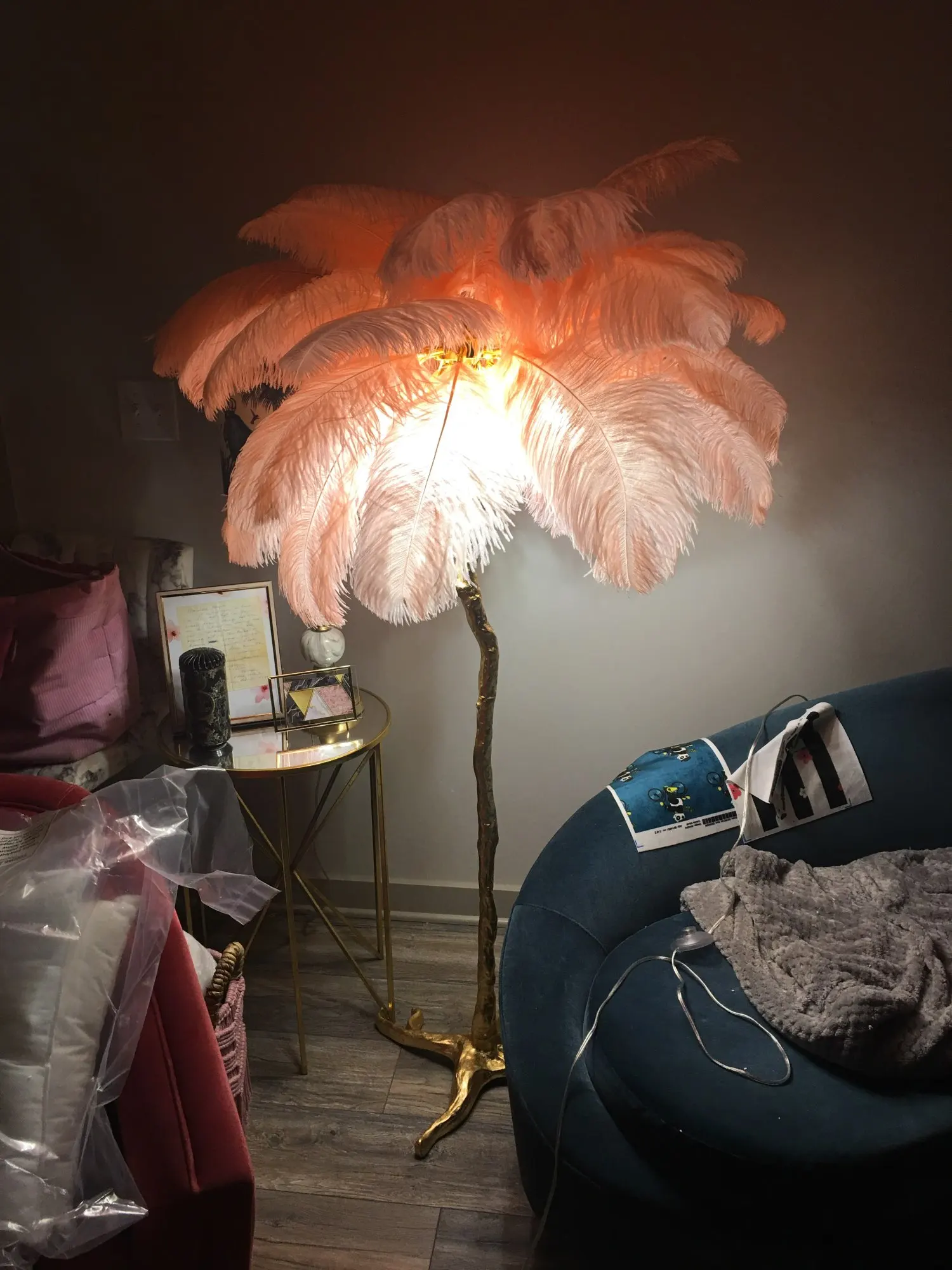 Напольный светильник в скандинавском стиле, из страусиных перьев