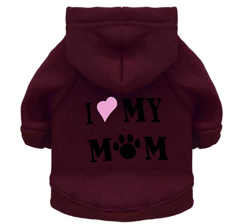 Зимняя одежда для собак, флисовая куртка с надписью I Love My Mom для щенков, теплая толстовка для кошек, одежда для домашних питомцев, толстовки для собак чихуахуа, Йорка