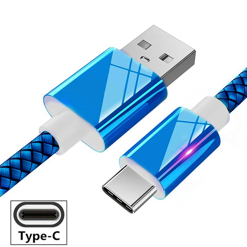 Синий кабель с разъемом типа C USB телефон зарядное устройство для ...