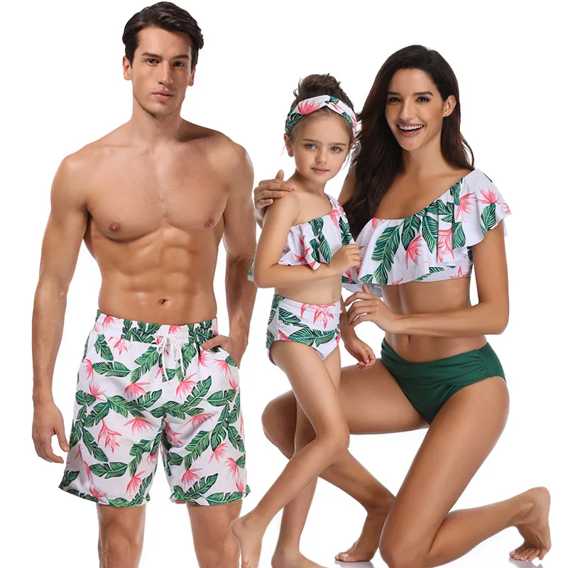 Купальник для мамы и дочки, пляжные шорты для папы и сына, купальни...
