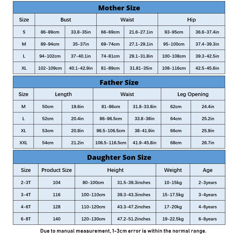 Название: одинаковые купальники для всей семьи Цвет: как на картинке Основной материал: нейлон и спандекс Сезон костюма: лето Пол: мать, дочь, отец, сын Размер для мамы: S/M/L/XL Размер папы: M/L/XL/XXL Размер ребенка: 2-14 T В комплект входит: 1 шт. купальный костюм (одна цена за один товар) Упаковка: opp
