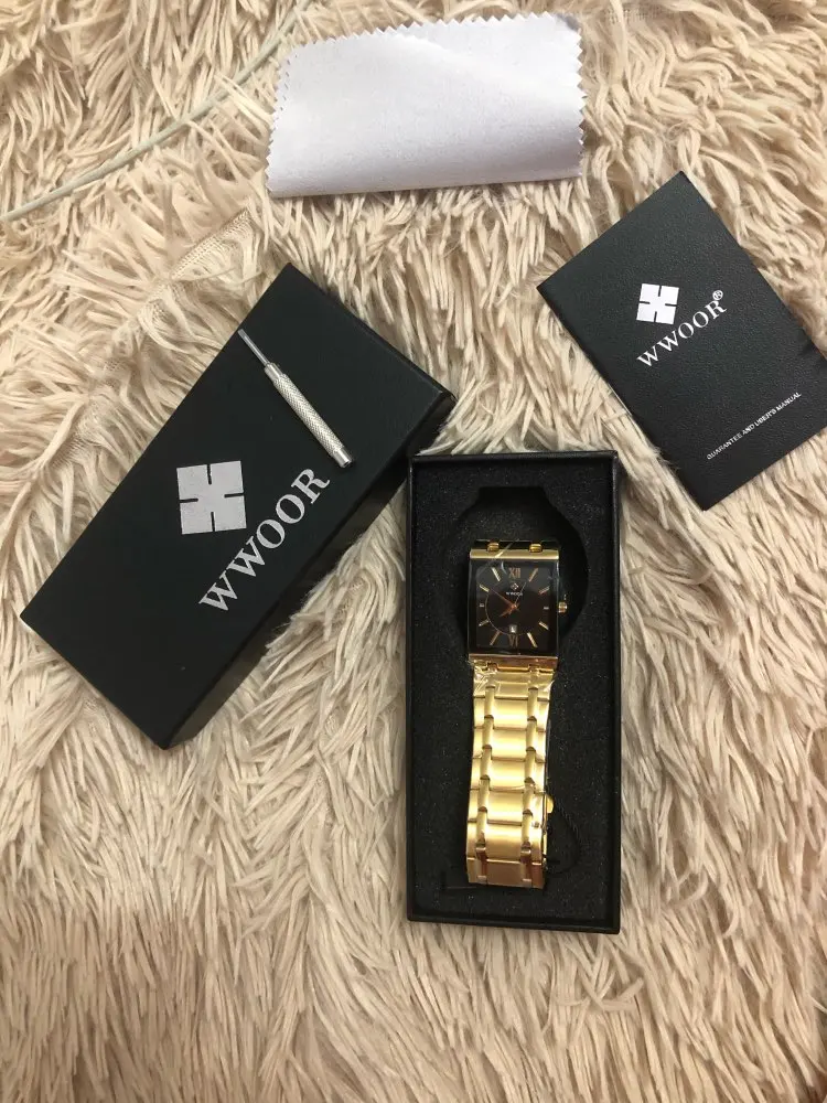 Часы наручные WWOOR мужские с квадратным циферблатом, брендовые роскошные золотистые Кварцевые водонепроницаемые из нержавеющей стали