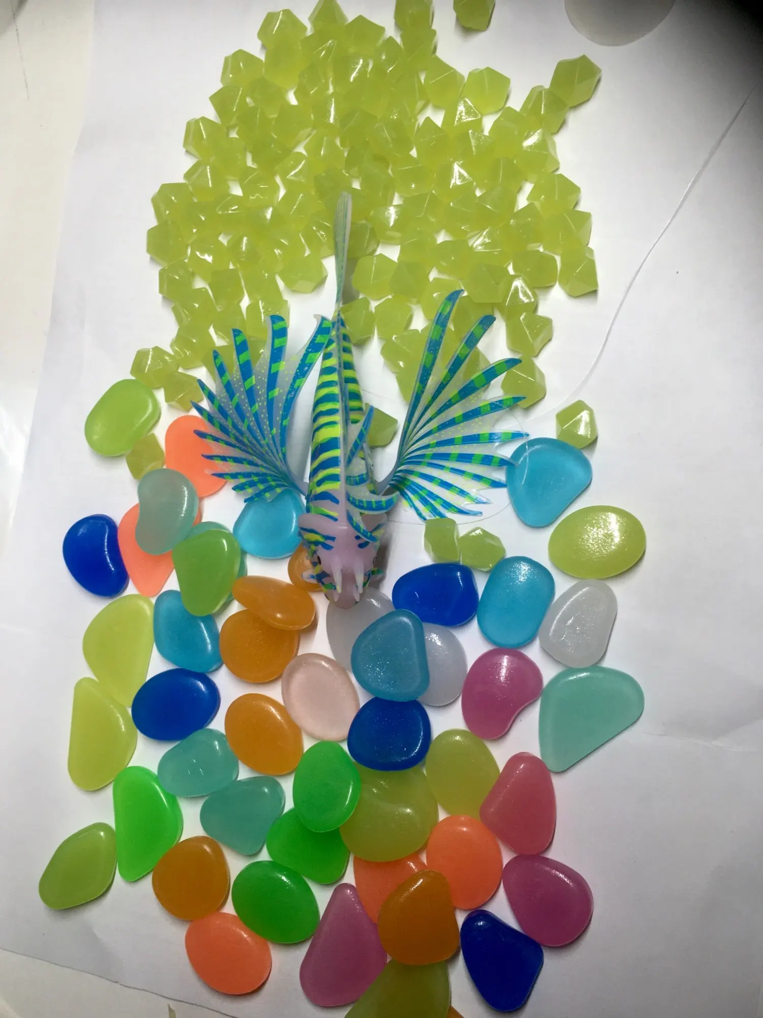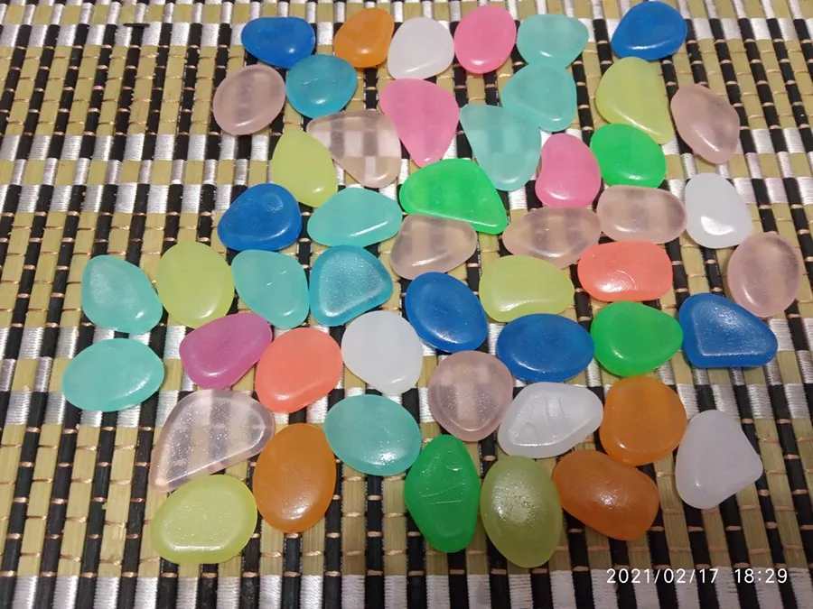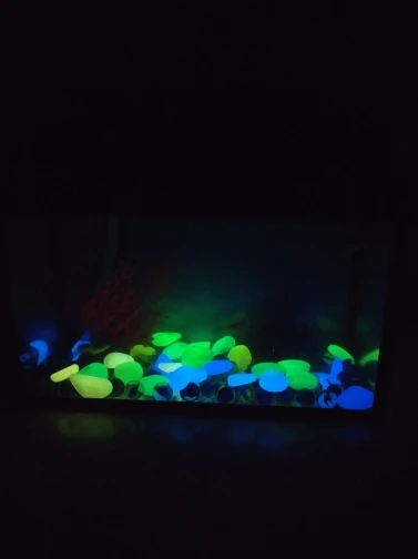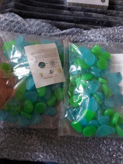 Посылка прибыла быстро, в течение 2 недель. Трек-код отслеживается. Галька светится даже через почтовую упаковку. К сожалению, оптика не позволяет запечатлеть свечение. Но они хорошо светятся в аквариуме. Они сделали синие. Я рекомендую этот товар.