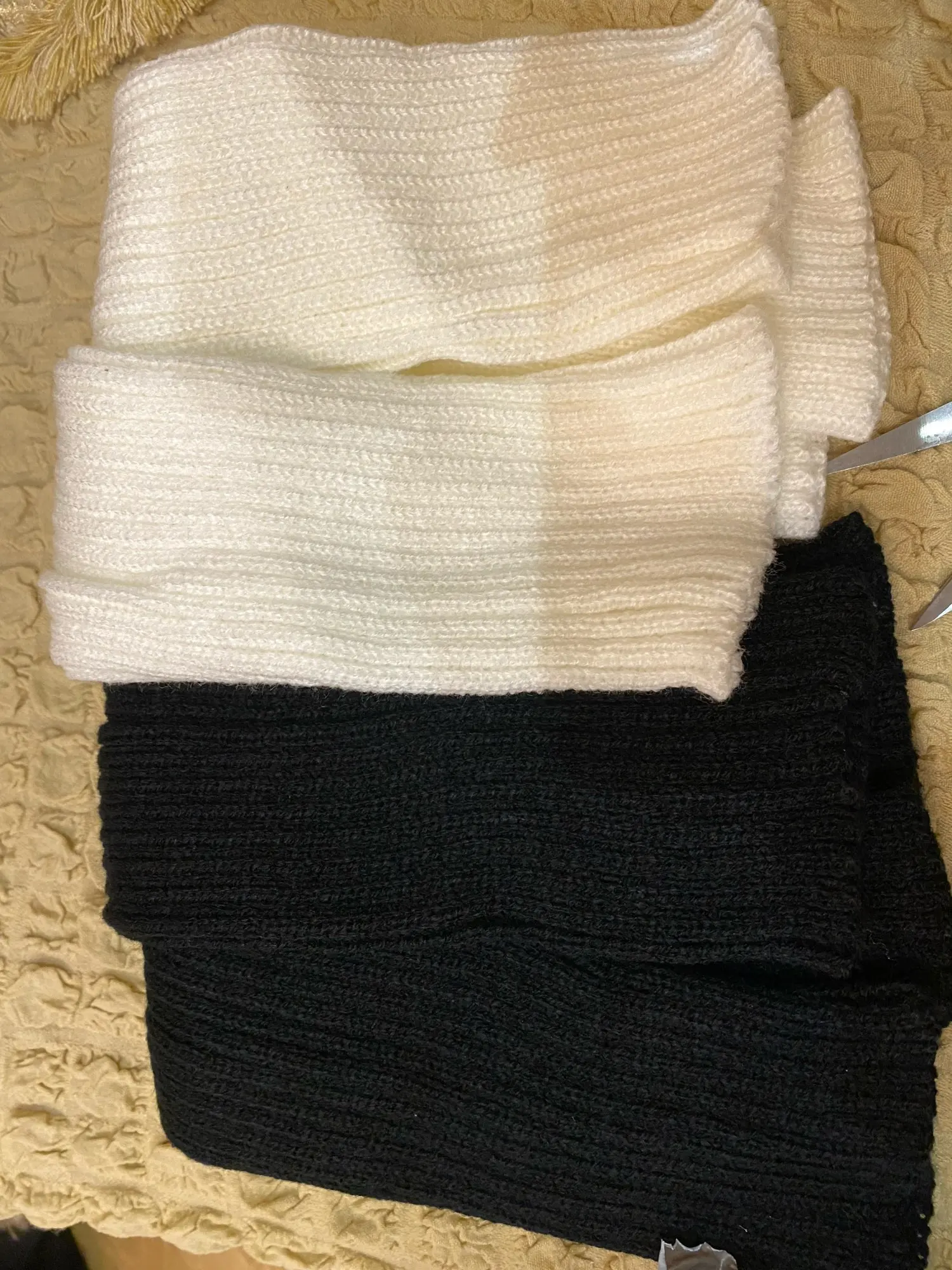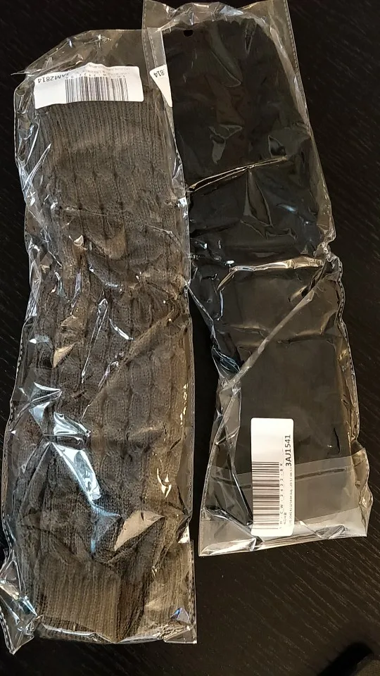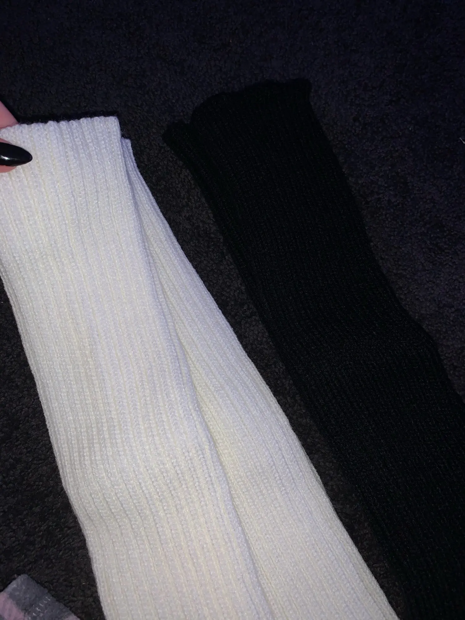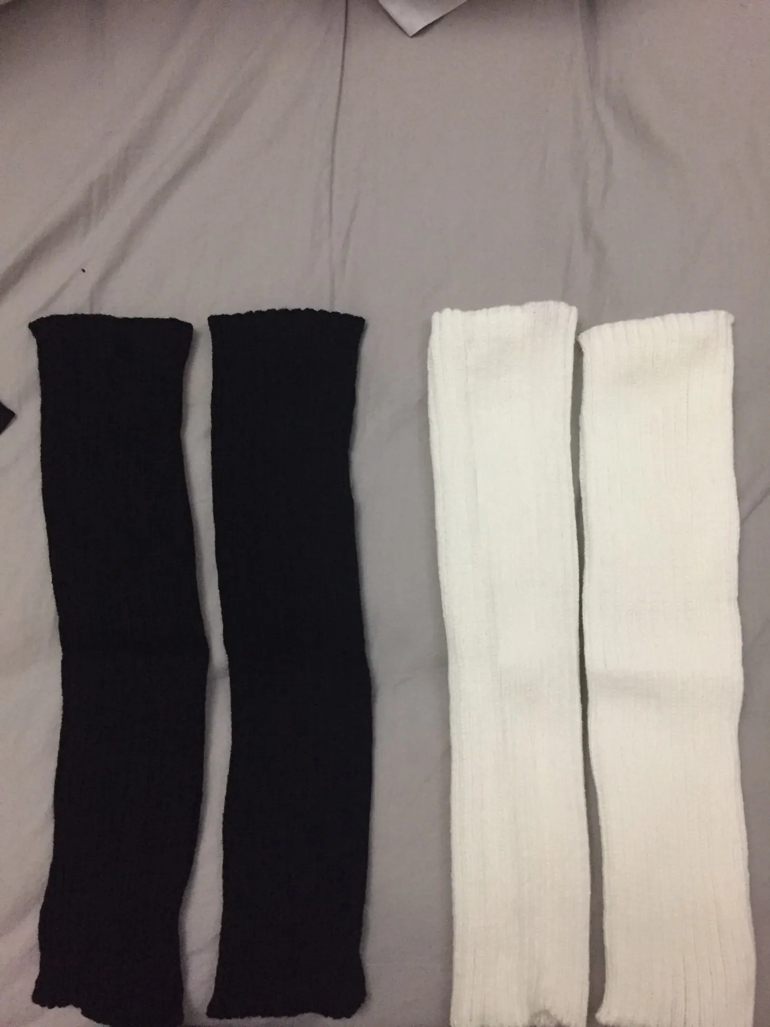Я получил черно-белые. Очень теплые, но не слишком толстые. Они очень длинные, если вы не срезаете их вверх-можно использовать как высокие носки до бедра, если вы носите с ними сапоги. Мягкий и не зуд. Очень хорошая id, действительно рекомендую это. Прошло меньше месяца, чтобы связаться со мной.