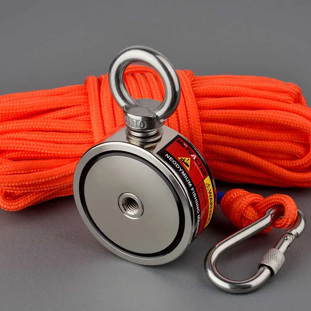 Двусторонний магнит, 250 кг * 2, основа из сильного Неодимового материала, кольцо N52, рыболовные магниты, 20 м, прочная веревка и перчатки