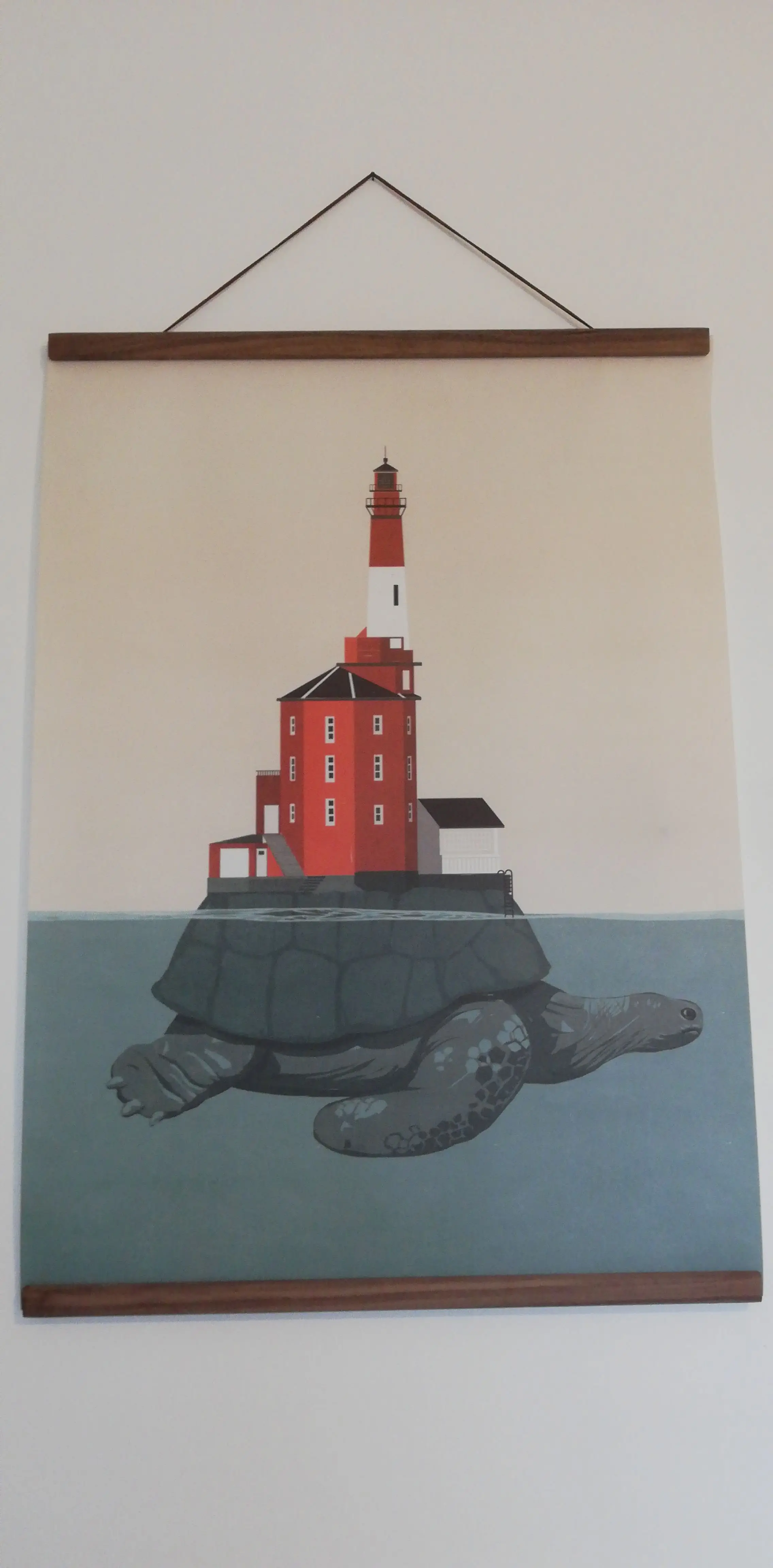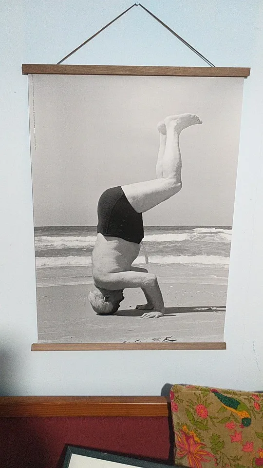 מרוצה מאוד, תליתי אותו על הקיר עם מפה מנוילנת של ארץ ישראל