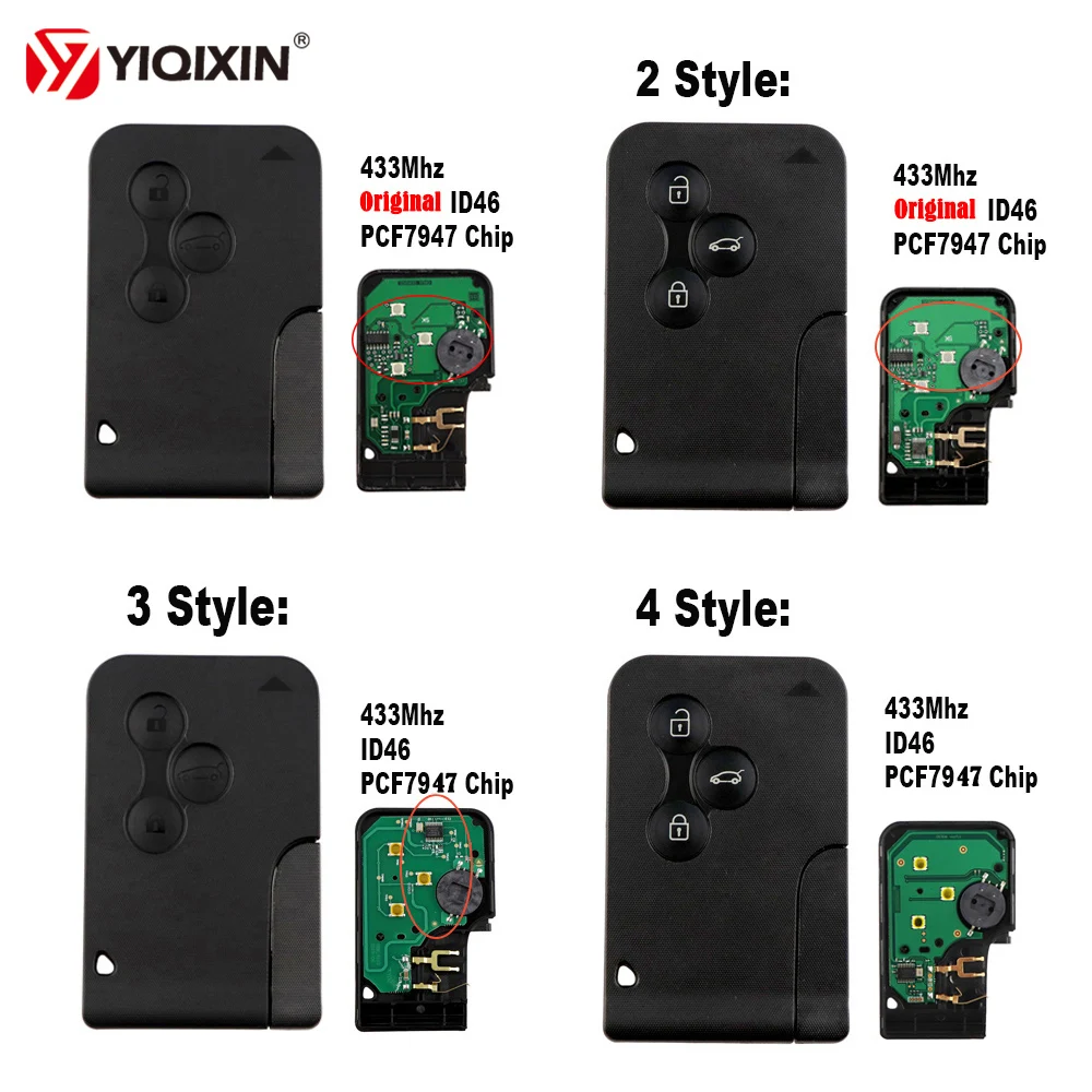 YIQIXIN 3 кнопки смарт-ключ-карта 433 МГц ID46 PCF7926 PCF7947 чип для Renault Megane 2 3 Scenic Grand 2003-2008 пульт дистанционного управления автомобильный ключ