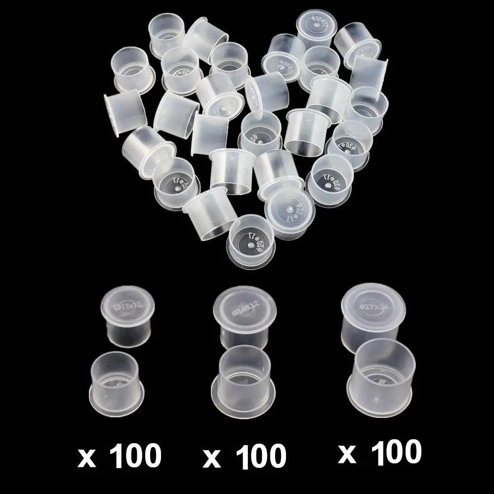 300 шт., чернильные чашки для тату, с базой, белые, смешанные размеры #11, маленький #14, средний #17, большие, для чернил для тату, аксессуары для татуировок