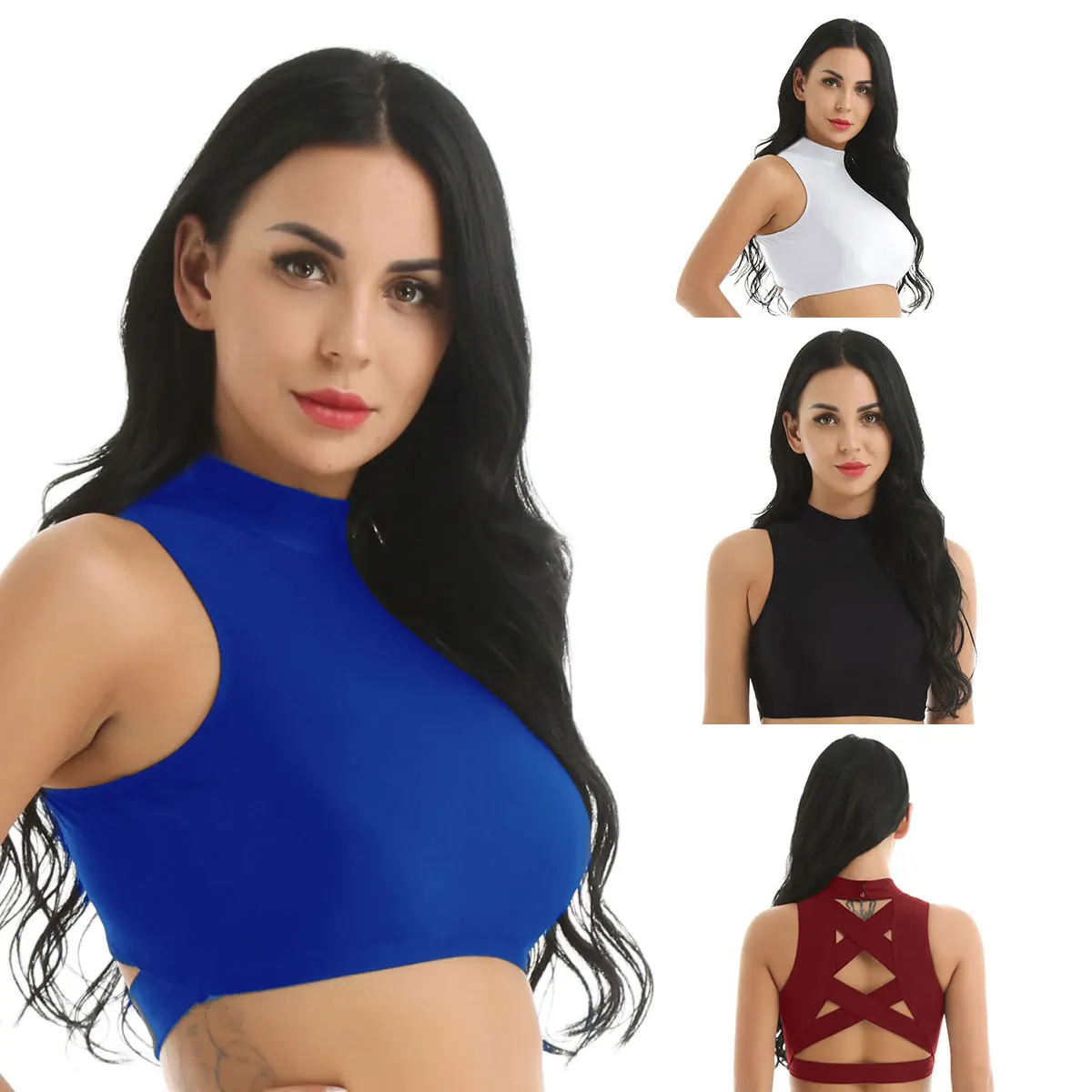 Трико женское, без рукавов, с ремешками на спине, с перекрещивающимися лямками, для латиноамериканских танцев, йоги, спорта, гимнастики