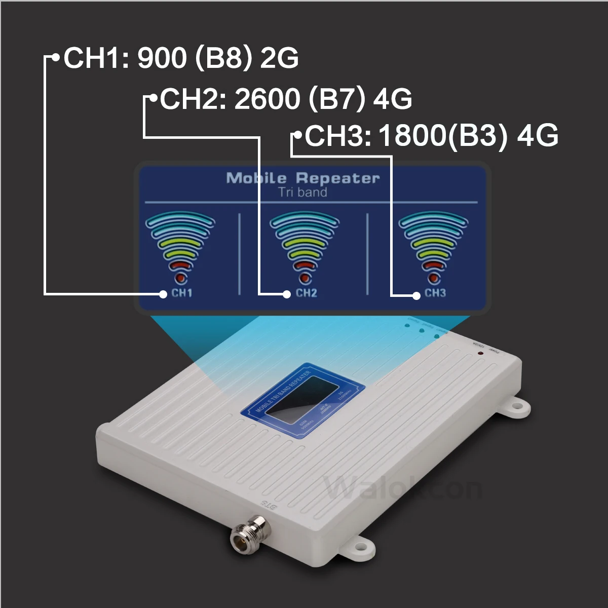 Трехдиапазонный ретранслятор сотового сигнала GSM, 4G, 4G, 4g, LTE, 900, 1800, 2600, мобильный телефон, 70 дБ