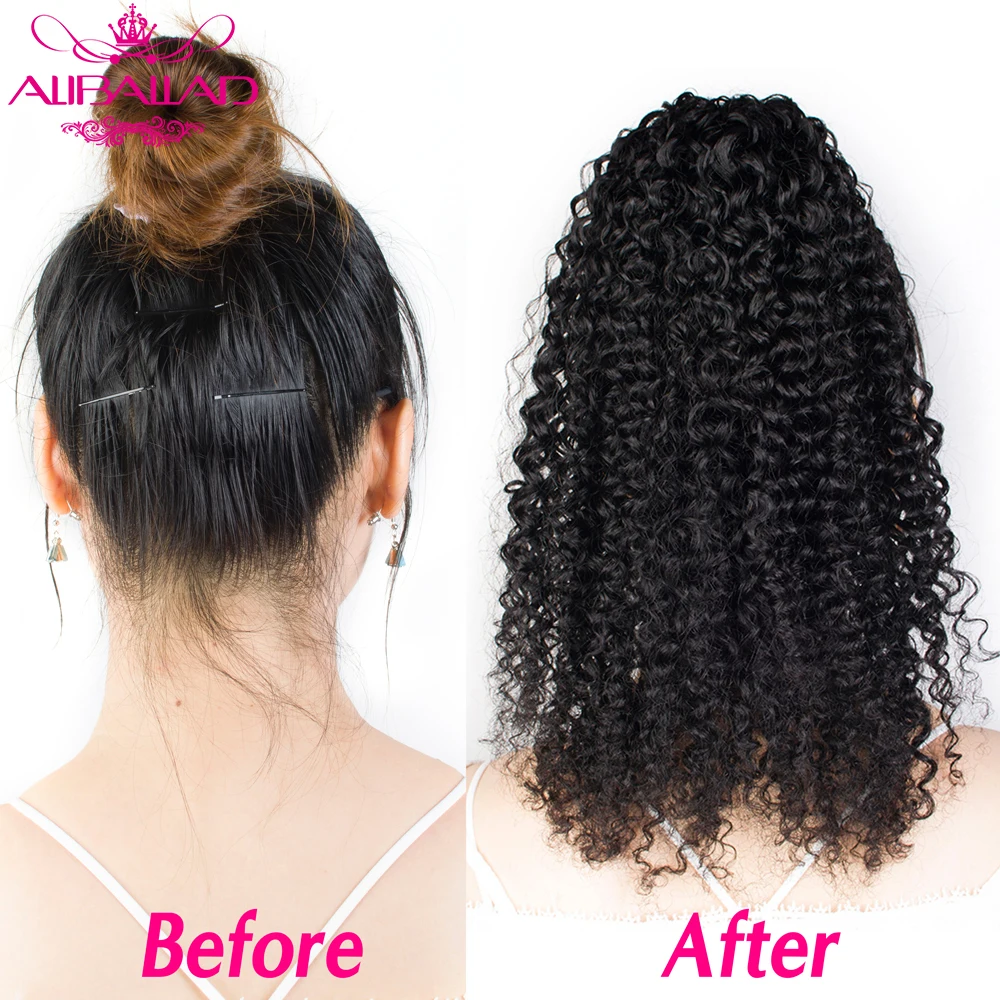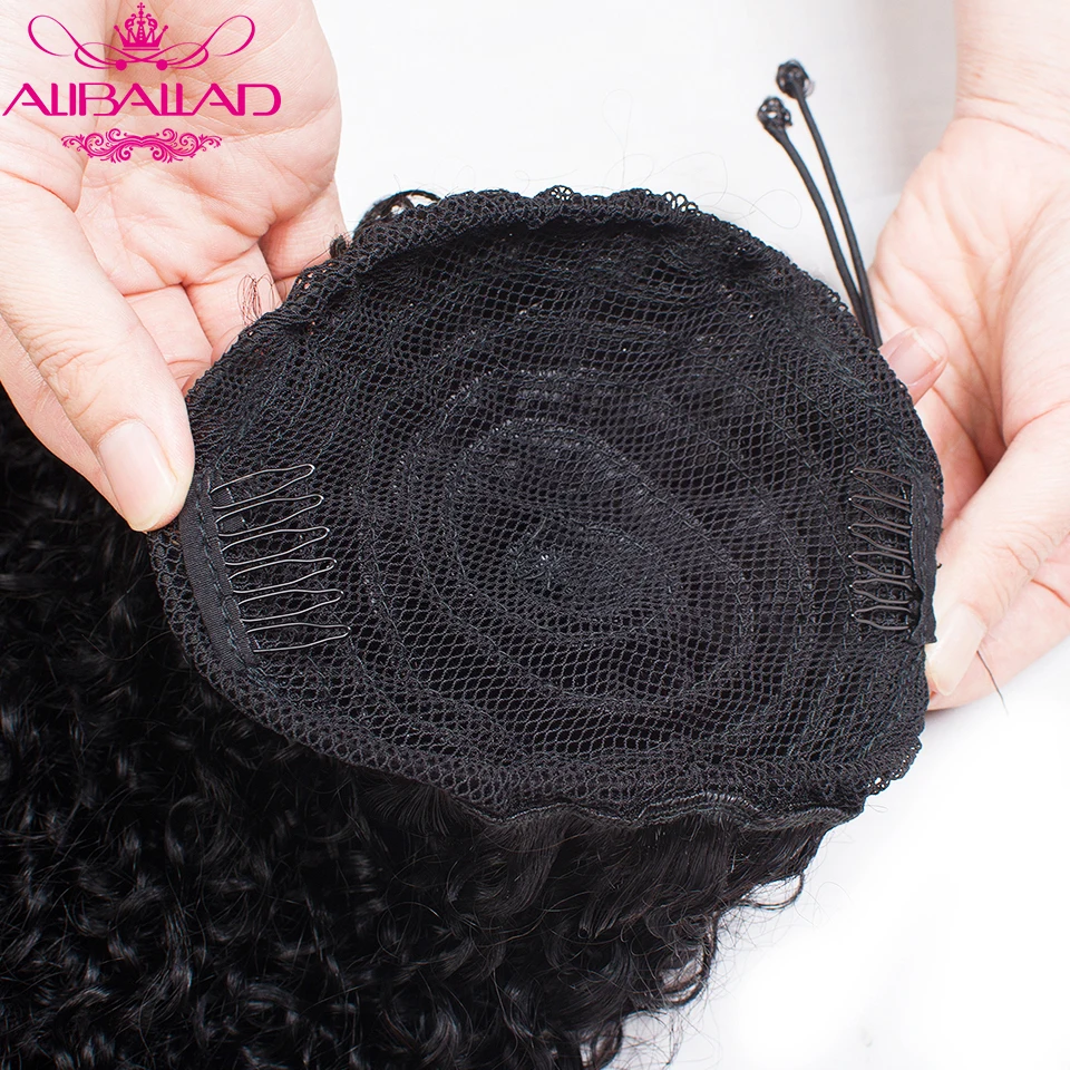 Aliballad кудрявые накладные человеческие волосы на шнурке, бразильские афро-волосы для наращивания, для черных женщин, Реми 150 г, 4 расчески