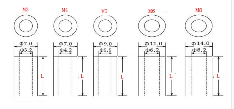 50 шт. M3 M4 M5 M6 ABS Rround spacer стойка Белая нейлоновая нерезьбовая прокладка круглая полая упорная шайба