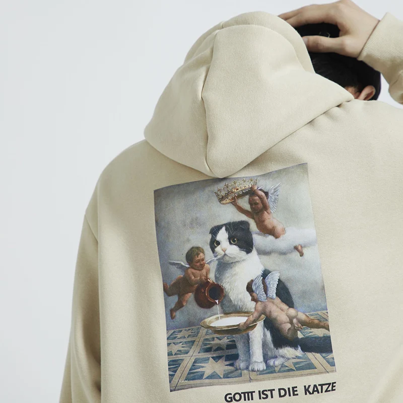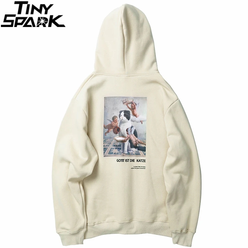 Мужская толстовка с капюшоном, хлопковая, в стиле хип-хоп, с принтом кота и ангела, 2021