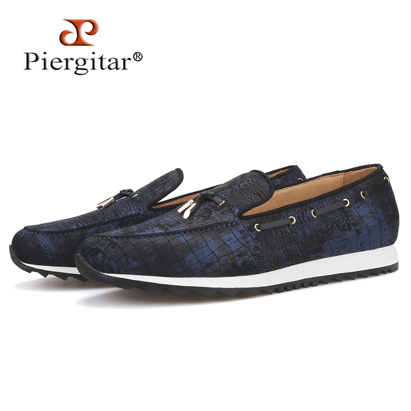 Кроссовки мужские Piergitar, темно-синие, 2019, ручной работы, с металлической кисточкой, спортивный стиль, слипоны, повседневные, смешанные цвета для мужчин