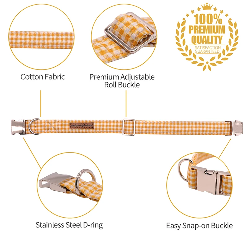 Уникальный Стиль, стильный ошейник с цветком, Осенний Желтый Клетчатый собачий ошейник с поводком для маленьких, средних и больших собак