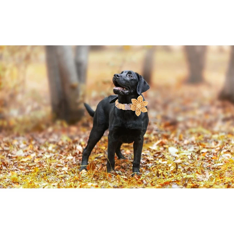 Уникальный стиль собачьи лапы воротник с цветком Осень Желтый Клетчатый собачий ошейник поводок набор для маленьких средних и больших собак