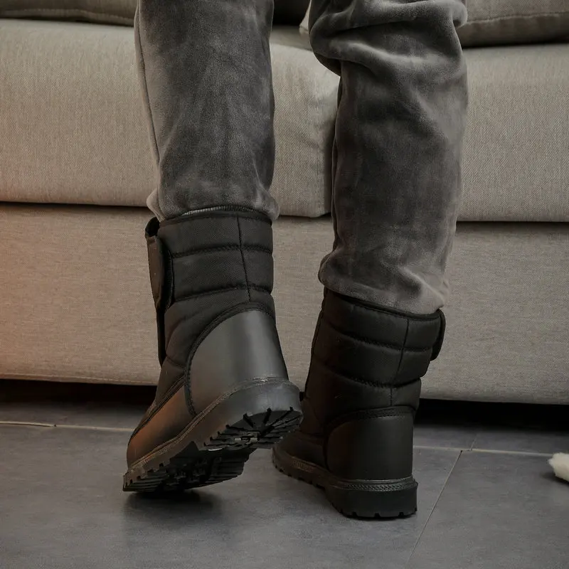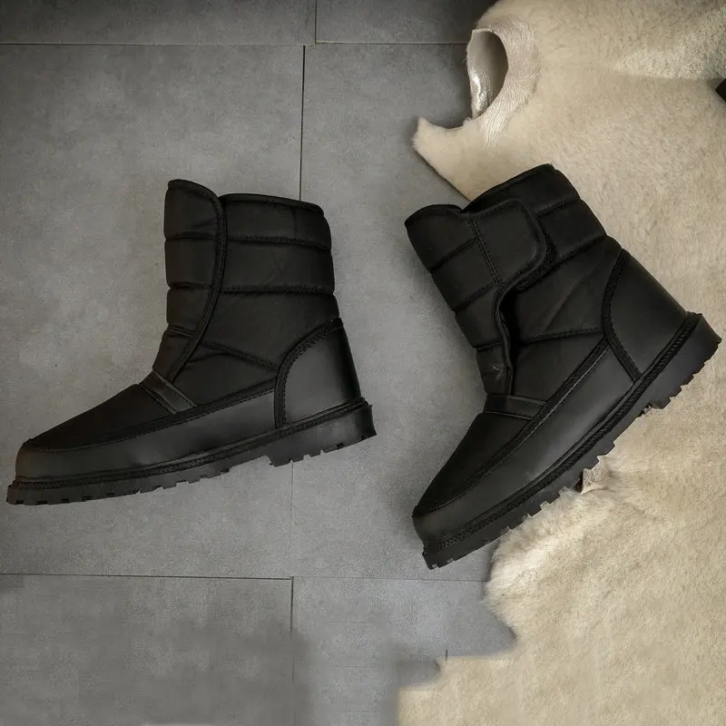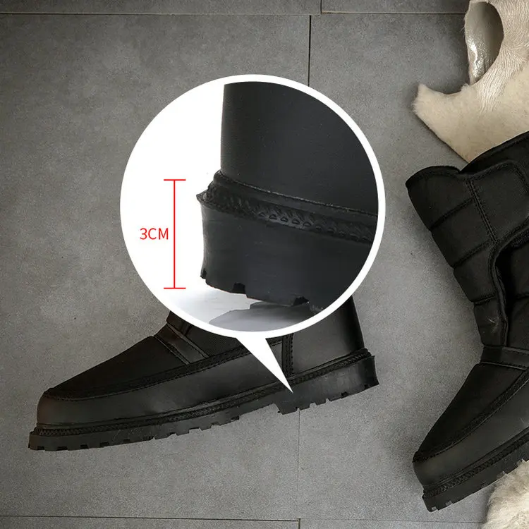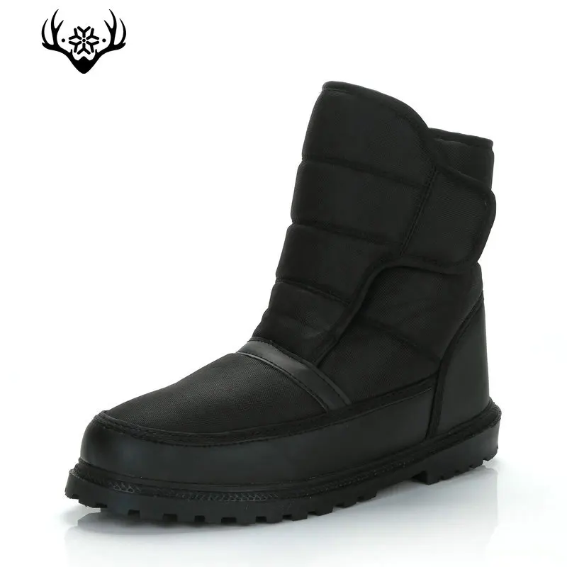 Мужские ботинки, черные зимние ботинки, теплая меховая стелька, Нескользящая Пряжка, размера плюс от 40 до 46, толстая подошва, нейлон, верхняя часть, бесплатная доставка
