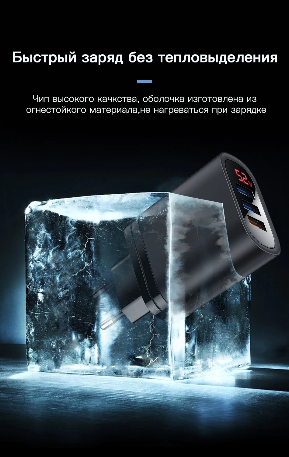 Зарядное устройство пришло быстро. Подключил сразу три устройства, один телефон с быстрой зарядкой, планшет и ещё один телефон. На дисплее поочередно отображается напряжение быстрой зарядки, обычной и общий ток. К сожалению через час дисплей погас и признаков жизни устройство больше не подавало. По просьбе продавца снял видео в Ютуб, с демонстрацией неисправности. Продавец молодец, отправил новую зарядку ещё раз, за что ему благодарность. Все пришло и работает нормально. Для интереса вскрыл сгоревшее ЗУ. Монтаж аккуратный, применена современная элементная база. Покупайте, работает.