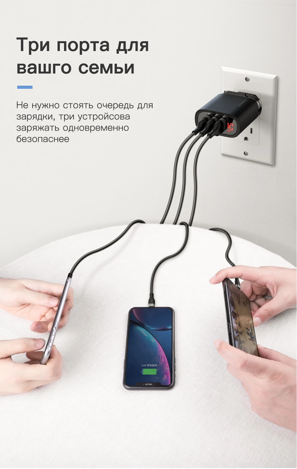 Хороший продавец. Рекомендую. Зарядка отличная. На 3 устройства. Цена более, чем разумная. Очень компактная. Ещё и на дисплее видны напряжение и сила тока.